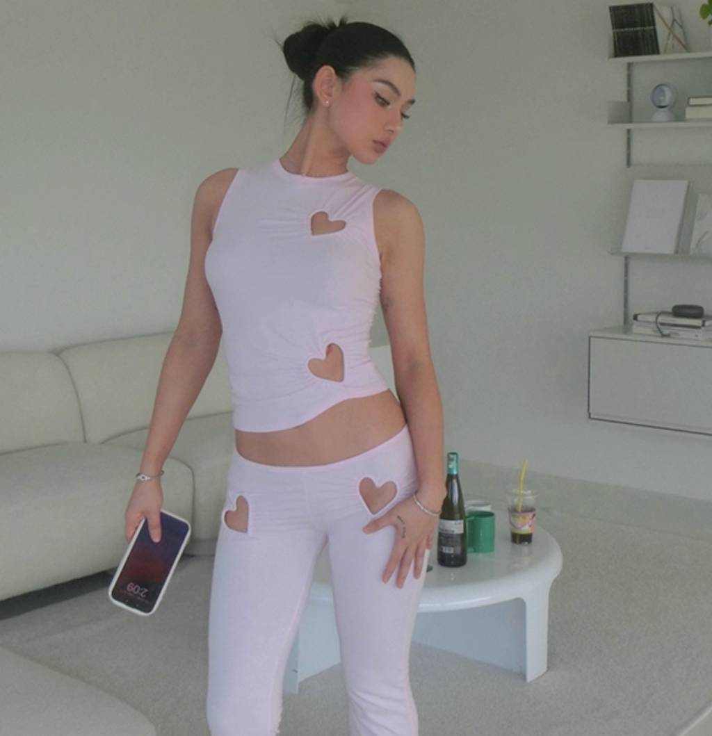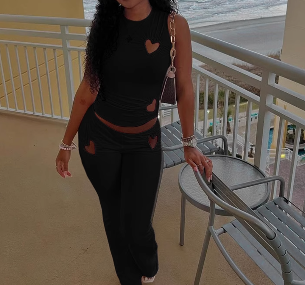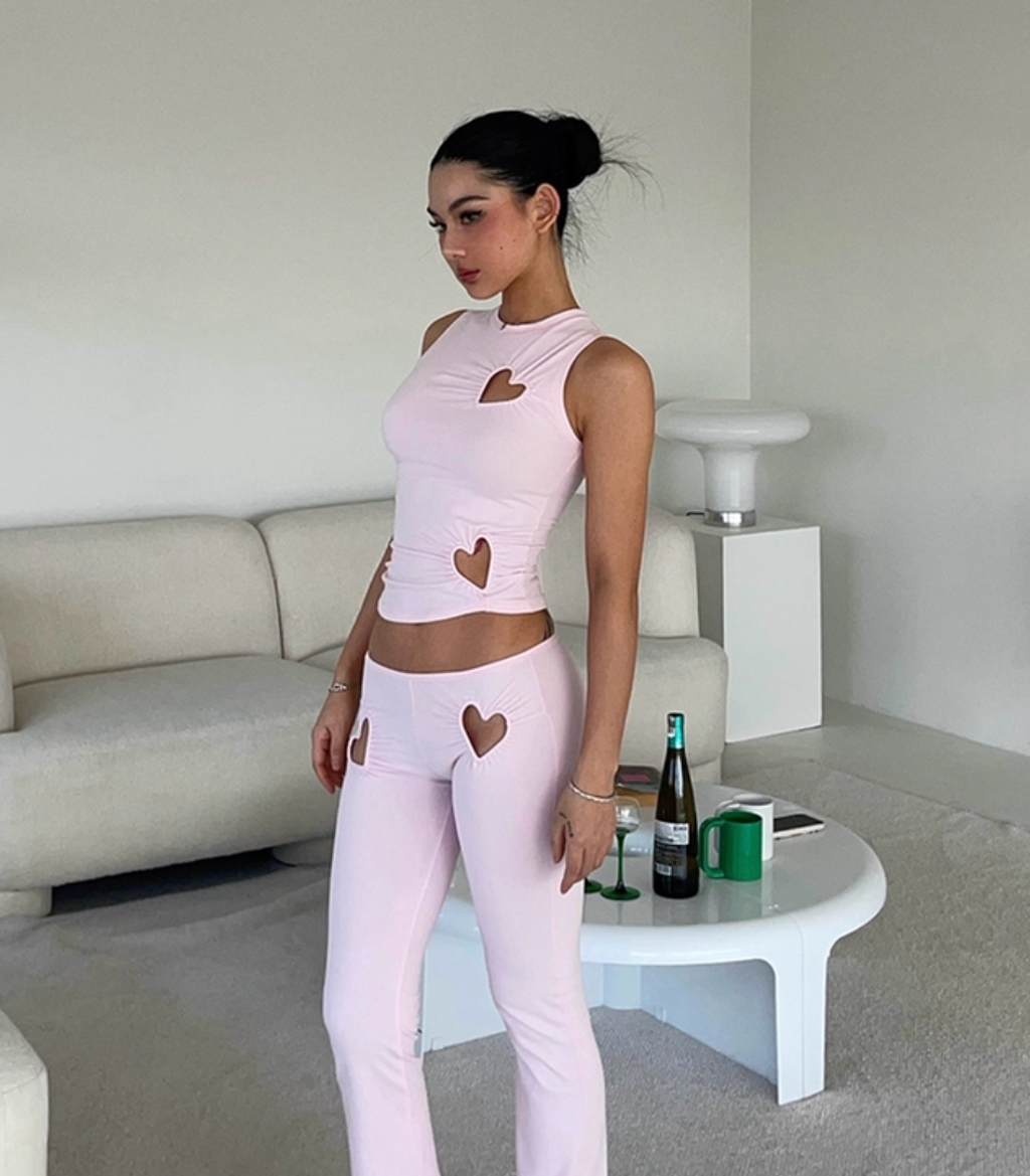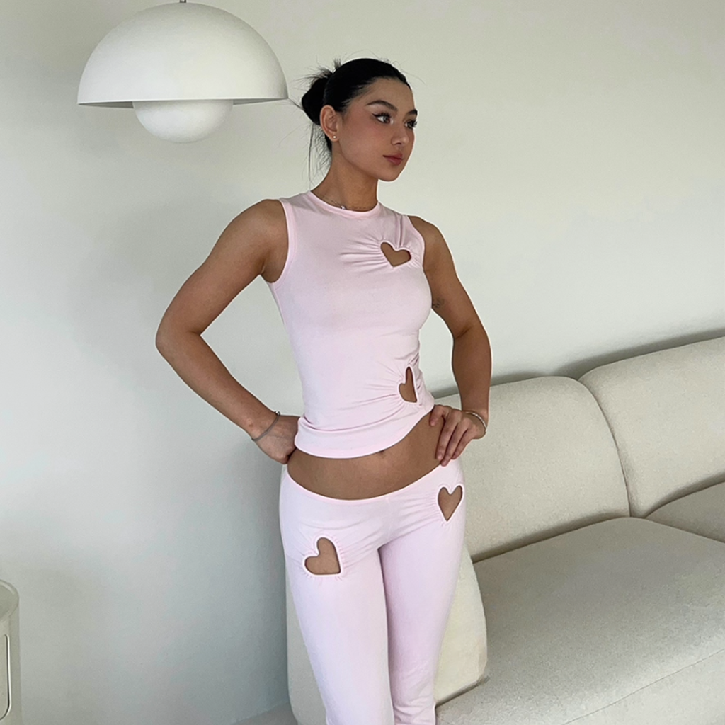 CHEEKY HEART CUTS TANK TOP & PANTS SET