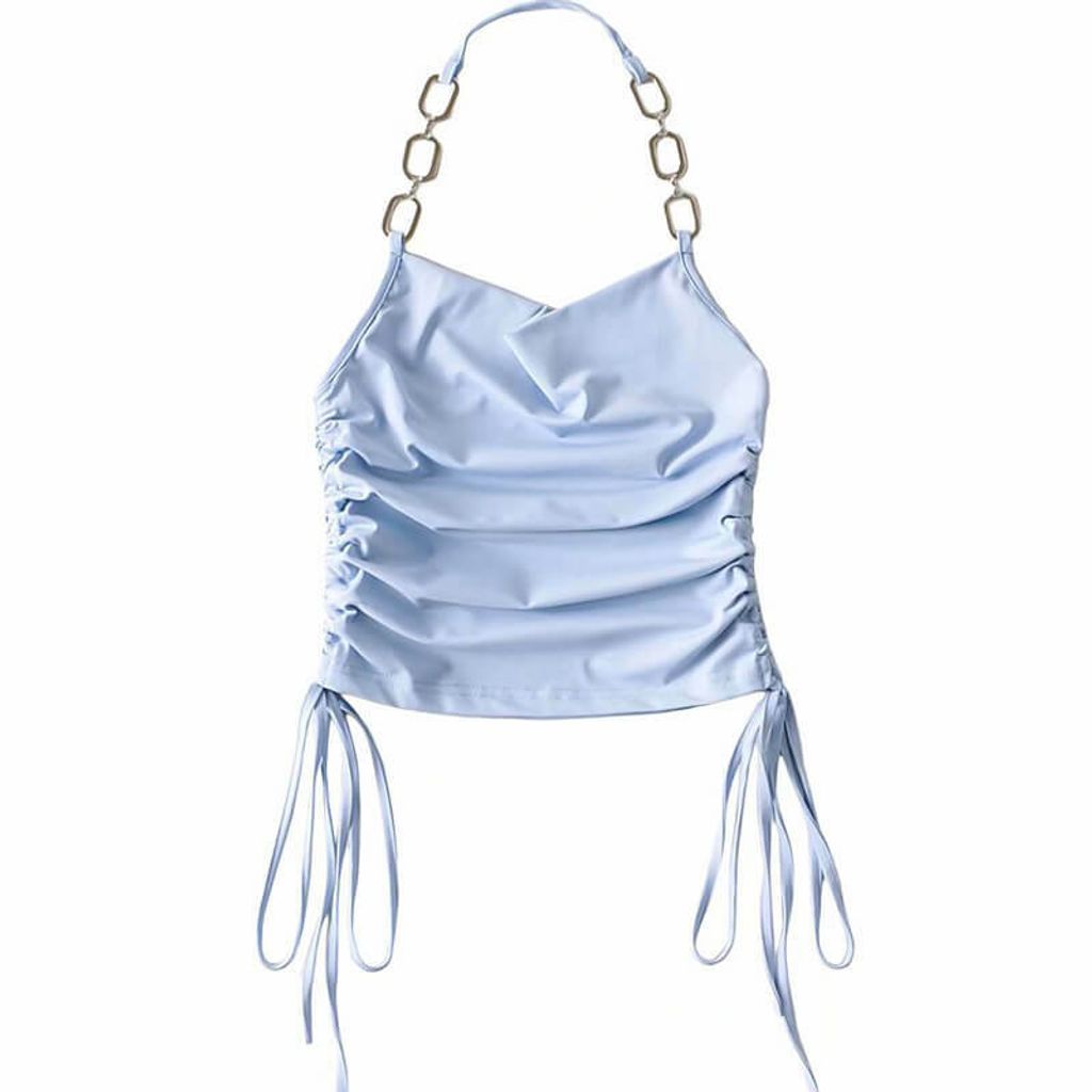 *熱賣追加出貨*鏈子綁帶縮編Babe Blue 上衣 - CROP TOP