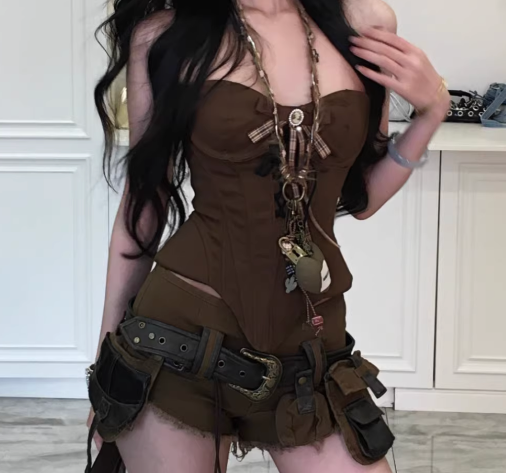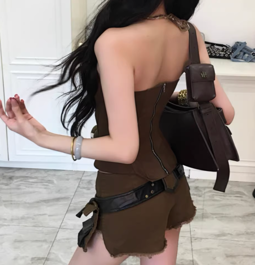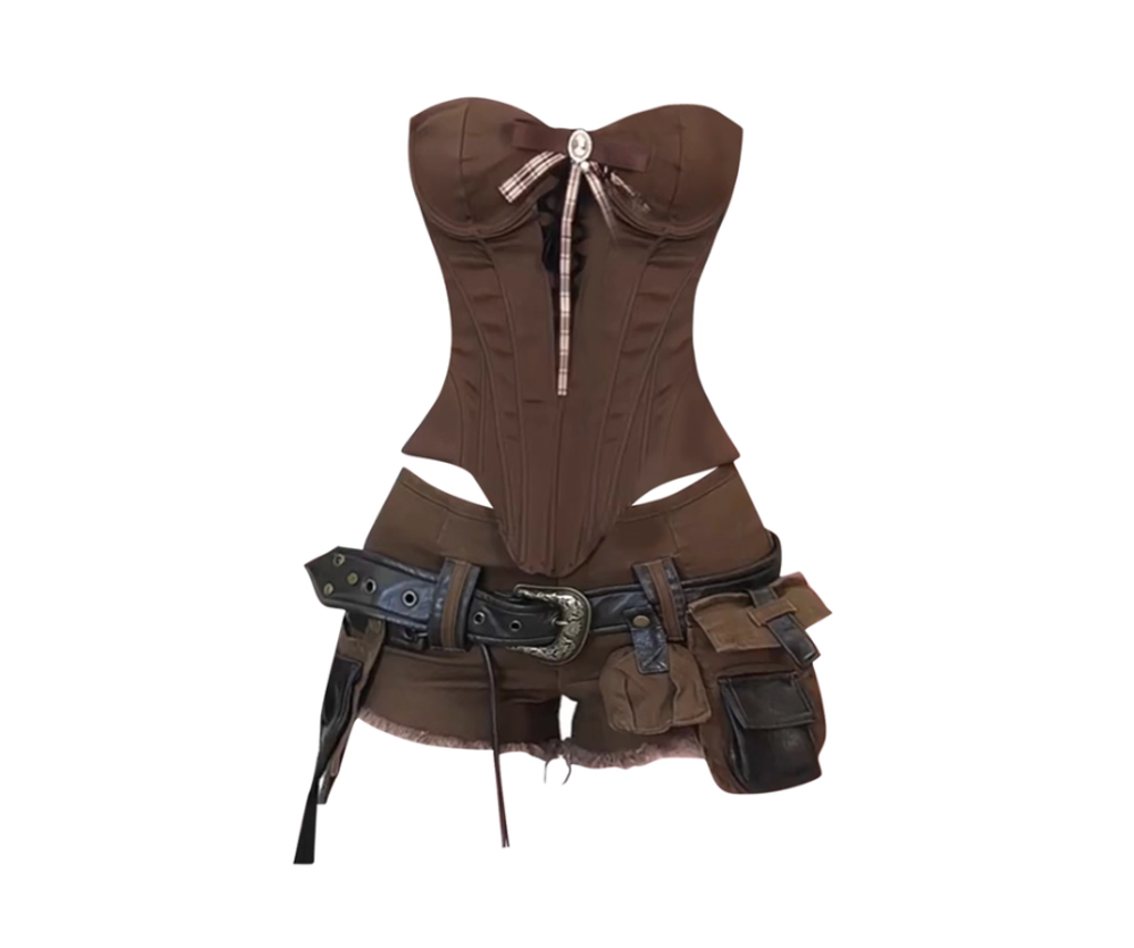 含腰帶 CORSET TOP & MINI SKIRT WITH WASIT POCKET BELT