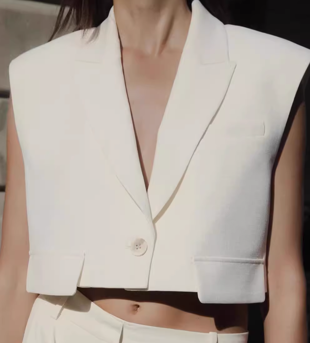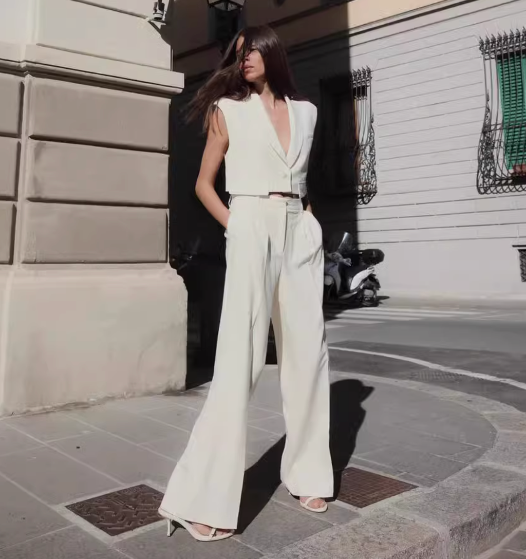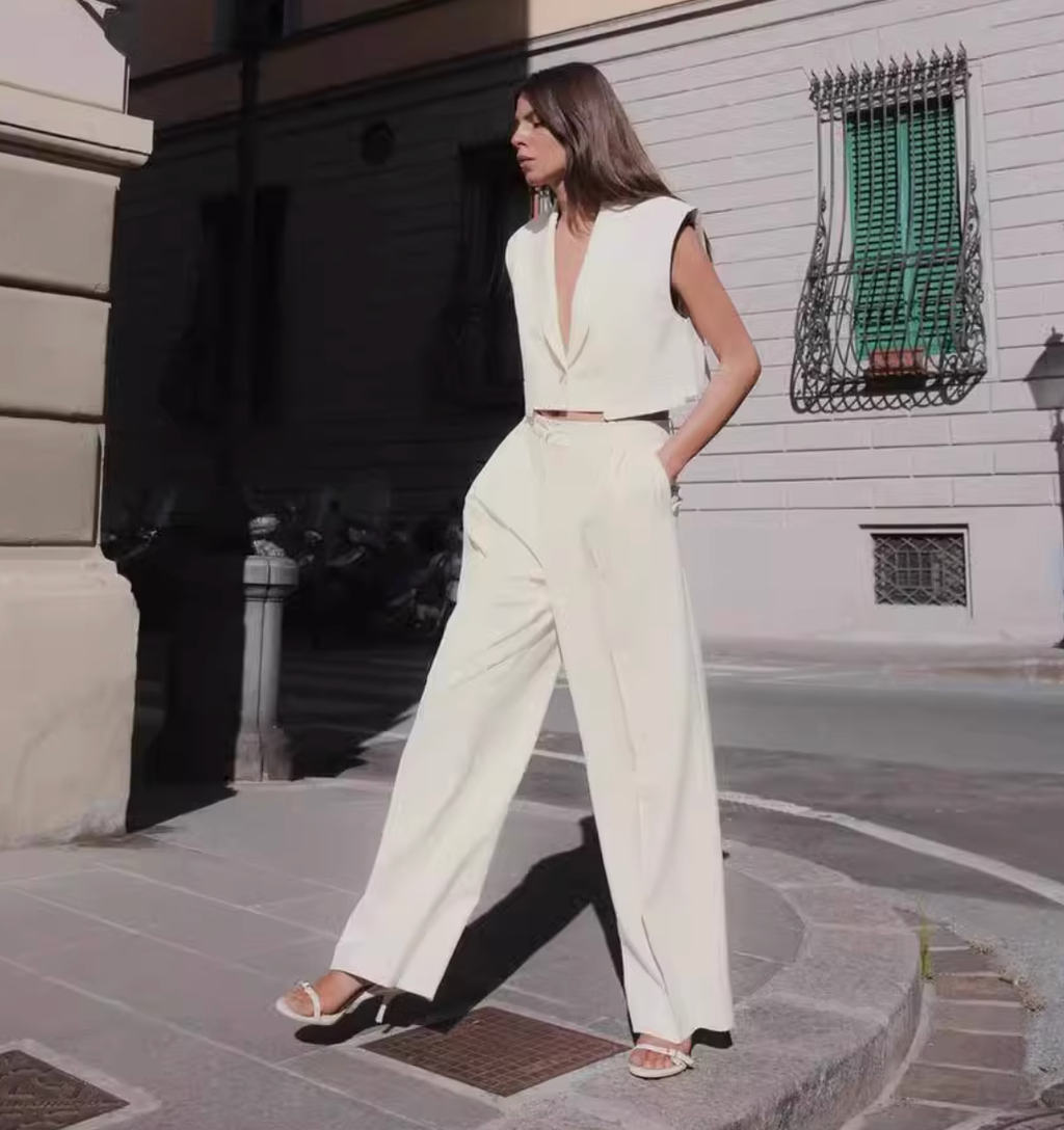 SILK CROP SUIT TOP & WIDE LEG PANTS SET
