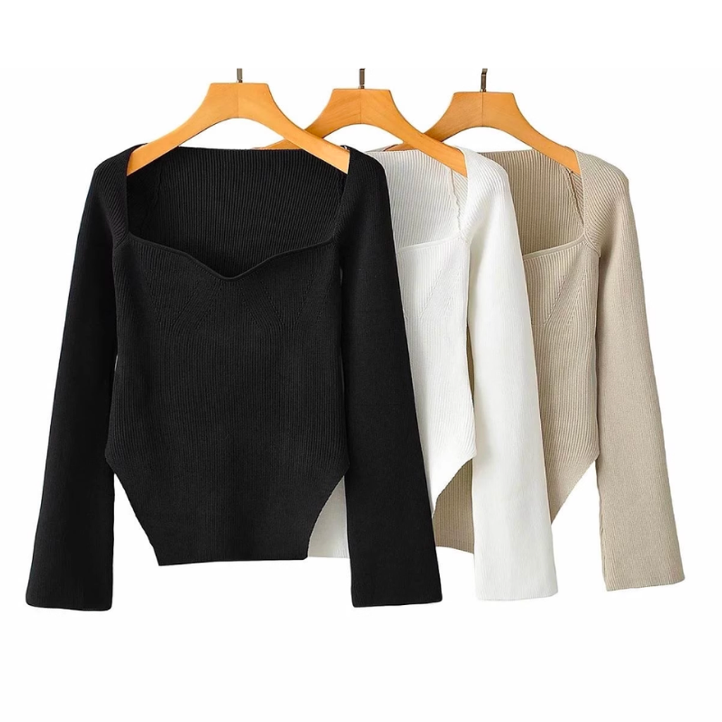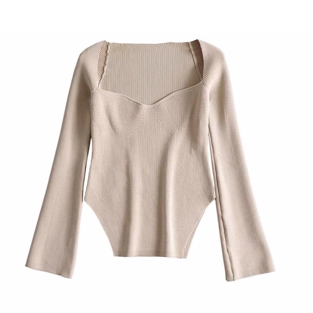 SCOOP NECK LONG SLEEVE KNIT TOP