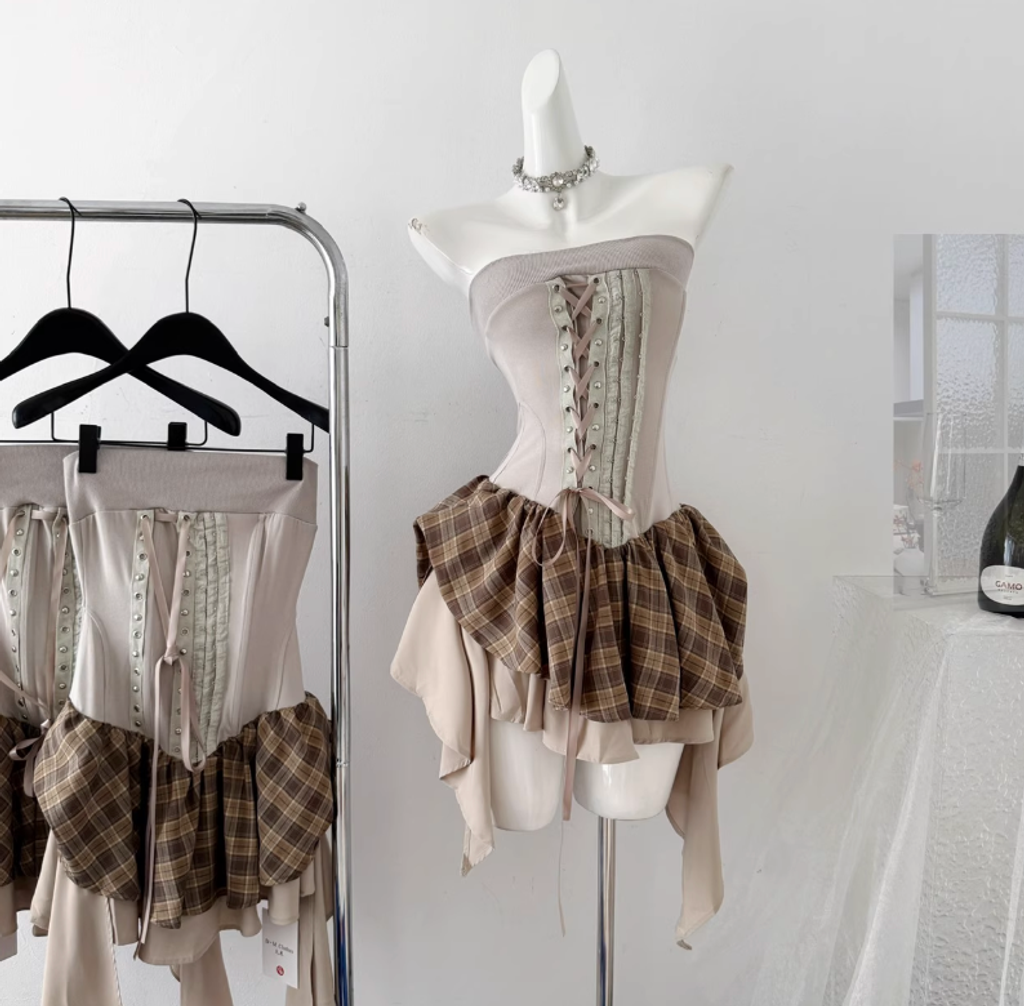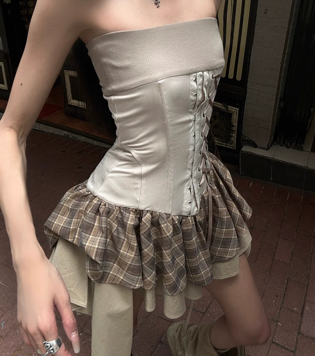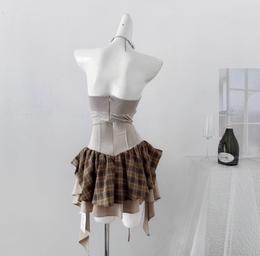 CHEEKY BOSS BABE CORSET RUFFLE CHECKED MINI DRESS
