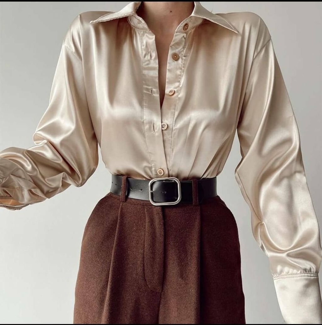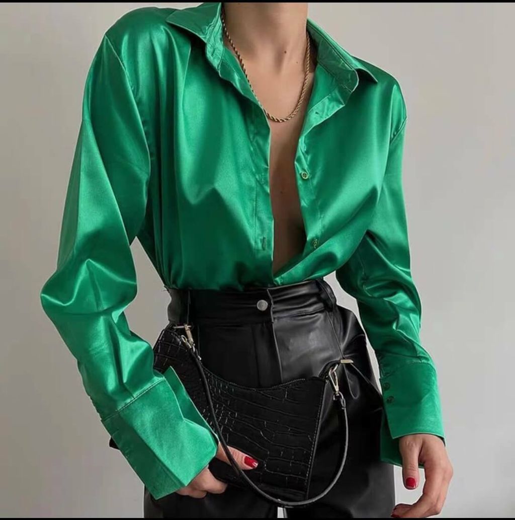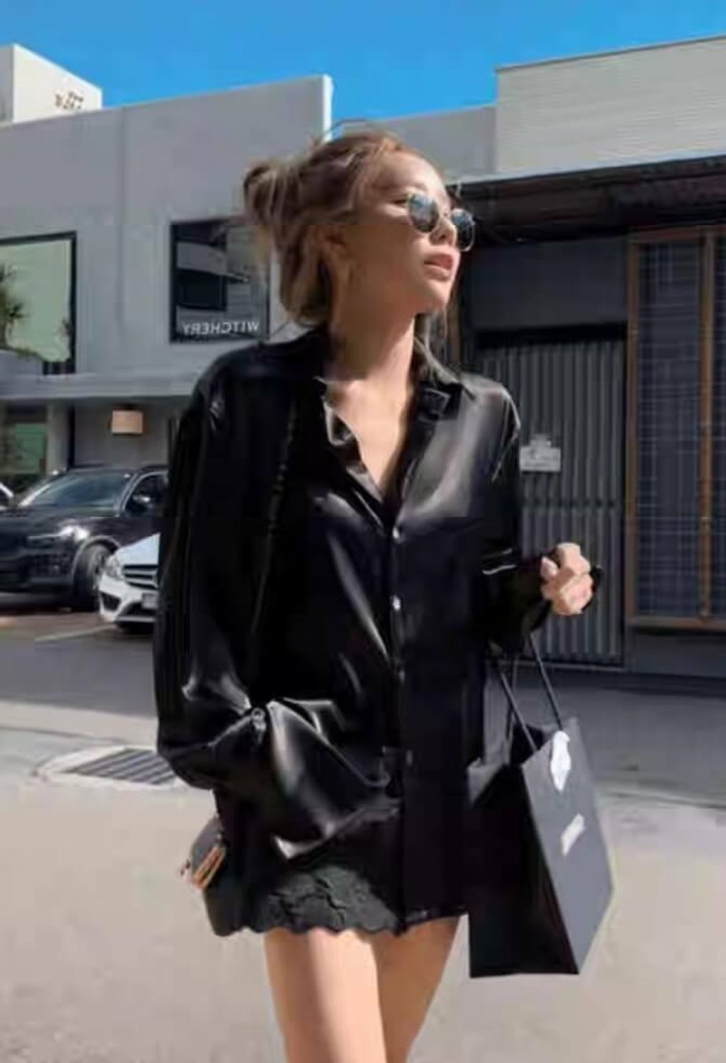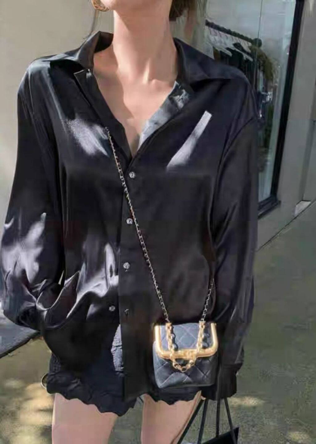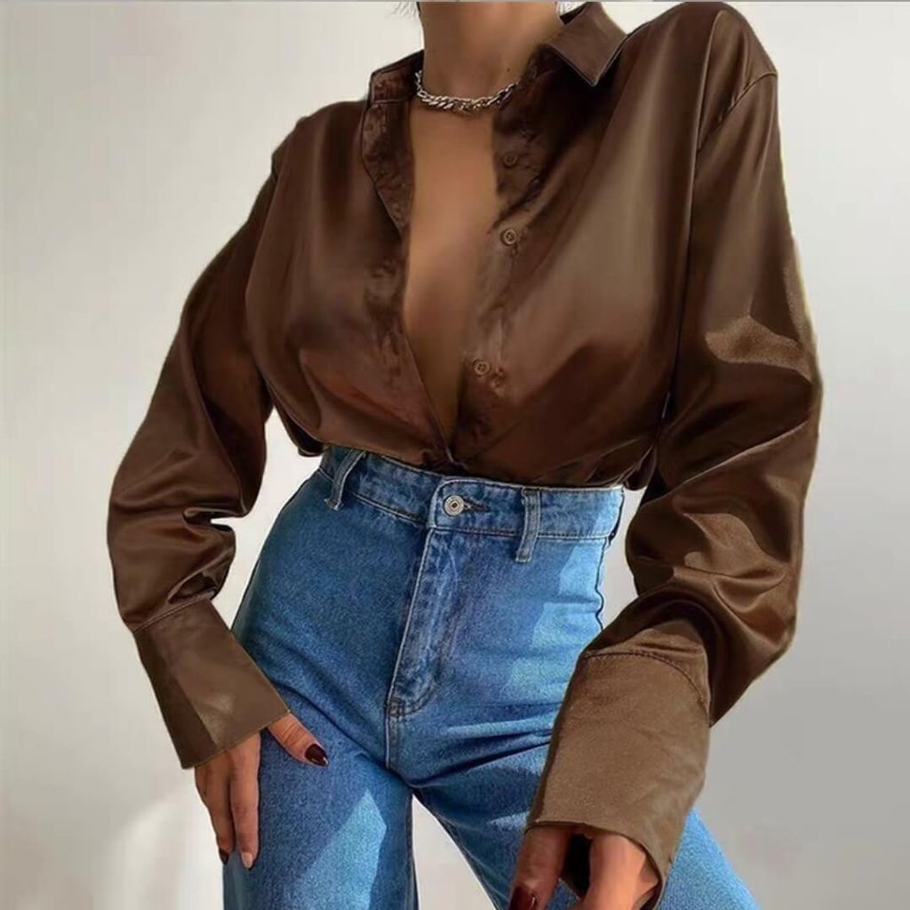 **性感獨特寬鬆春秋緞面柔亮襯衫**