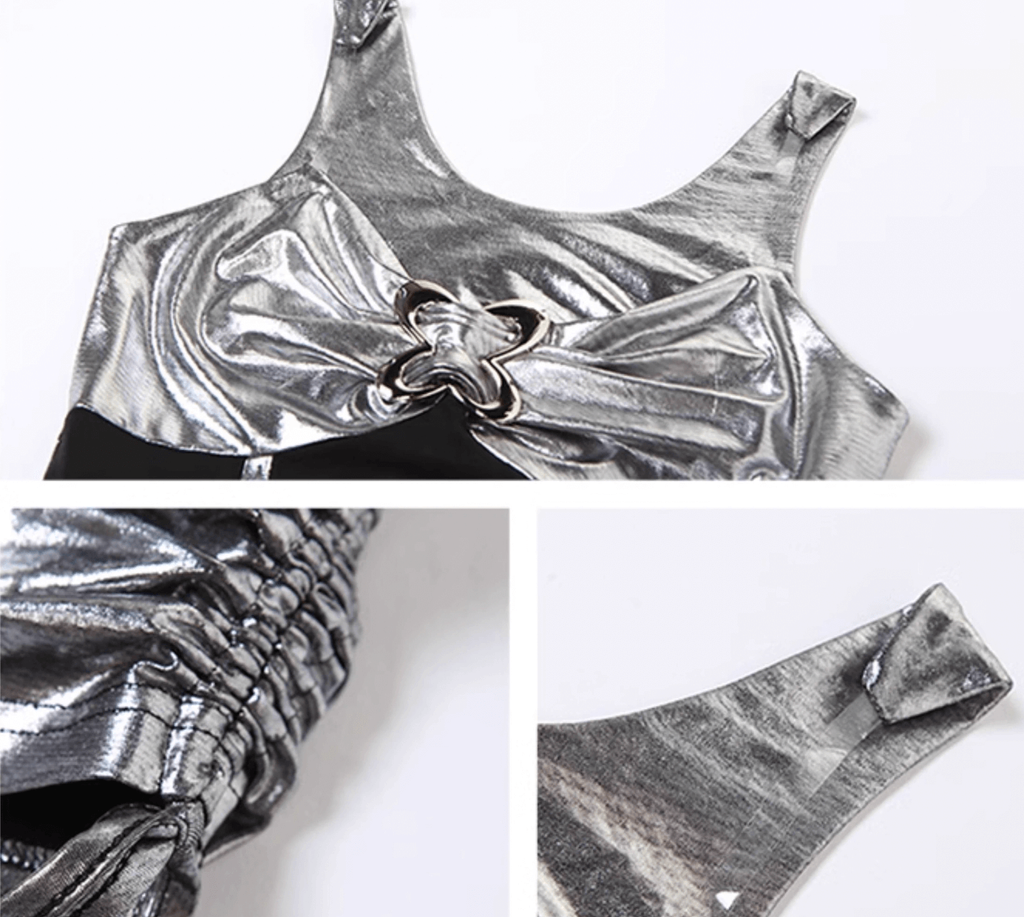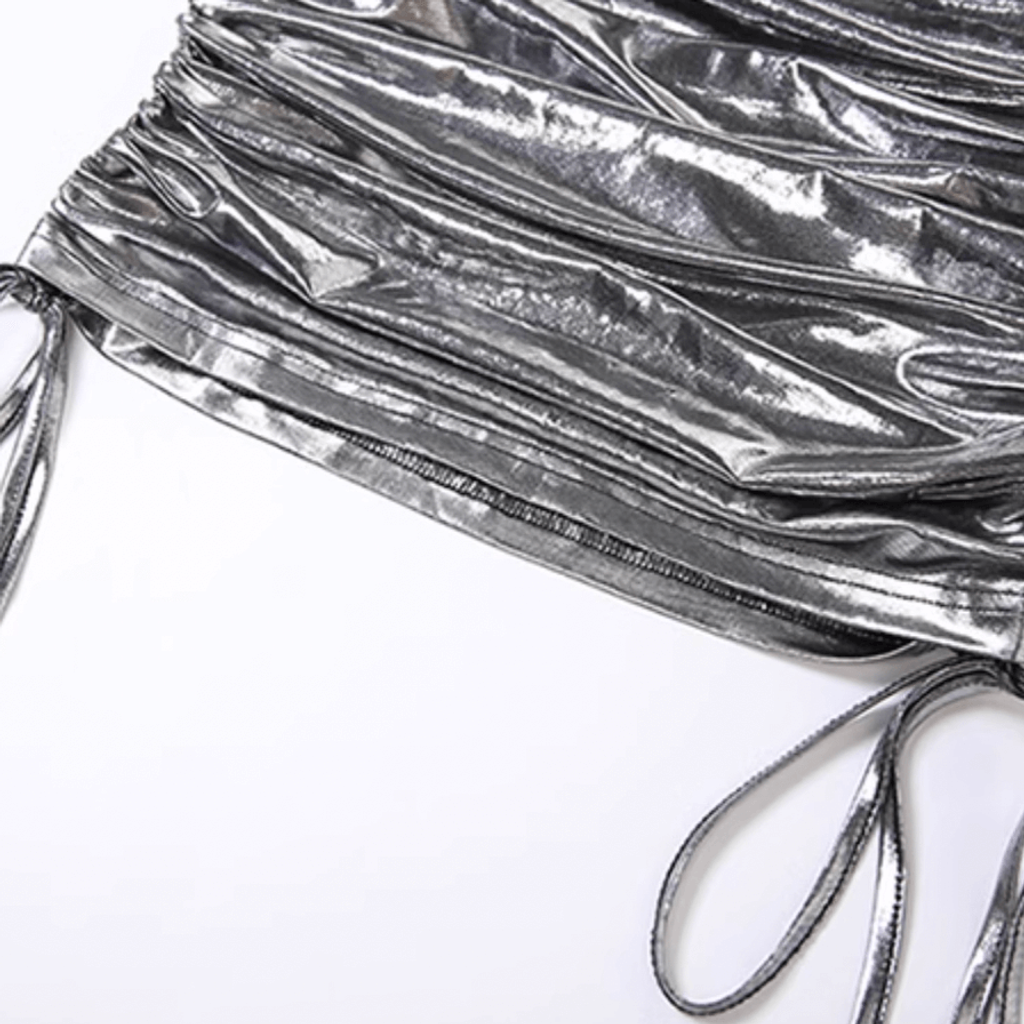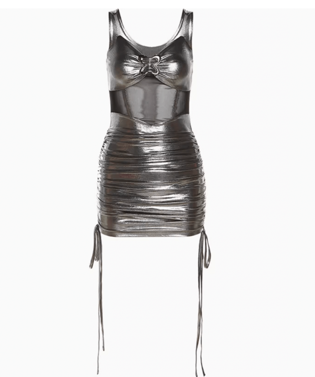 CHEEKY METALLIC MESH SILVER MINI DRESS
