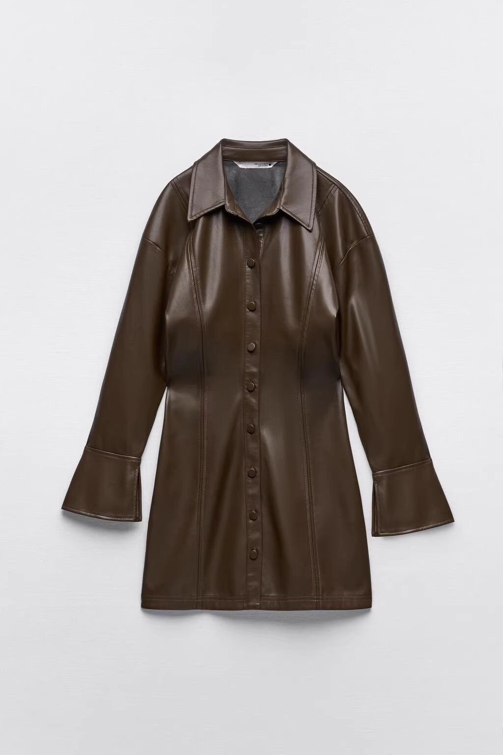 CHOCOLATE FAUX LEATHER LONG SLEEVE BLOUSE MINI DRESS 總分: 0 - 0評價