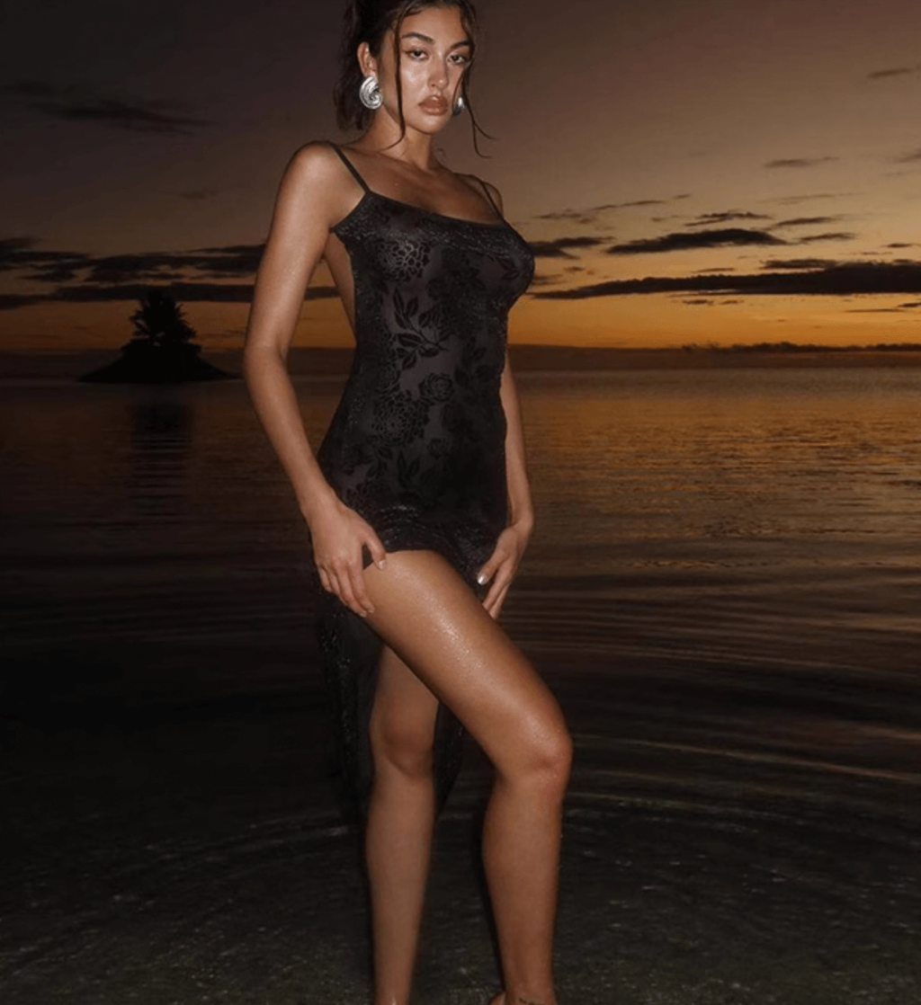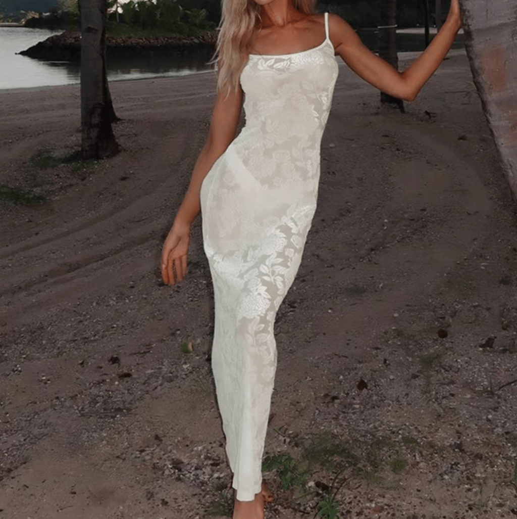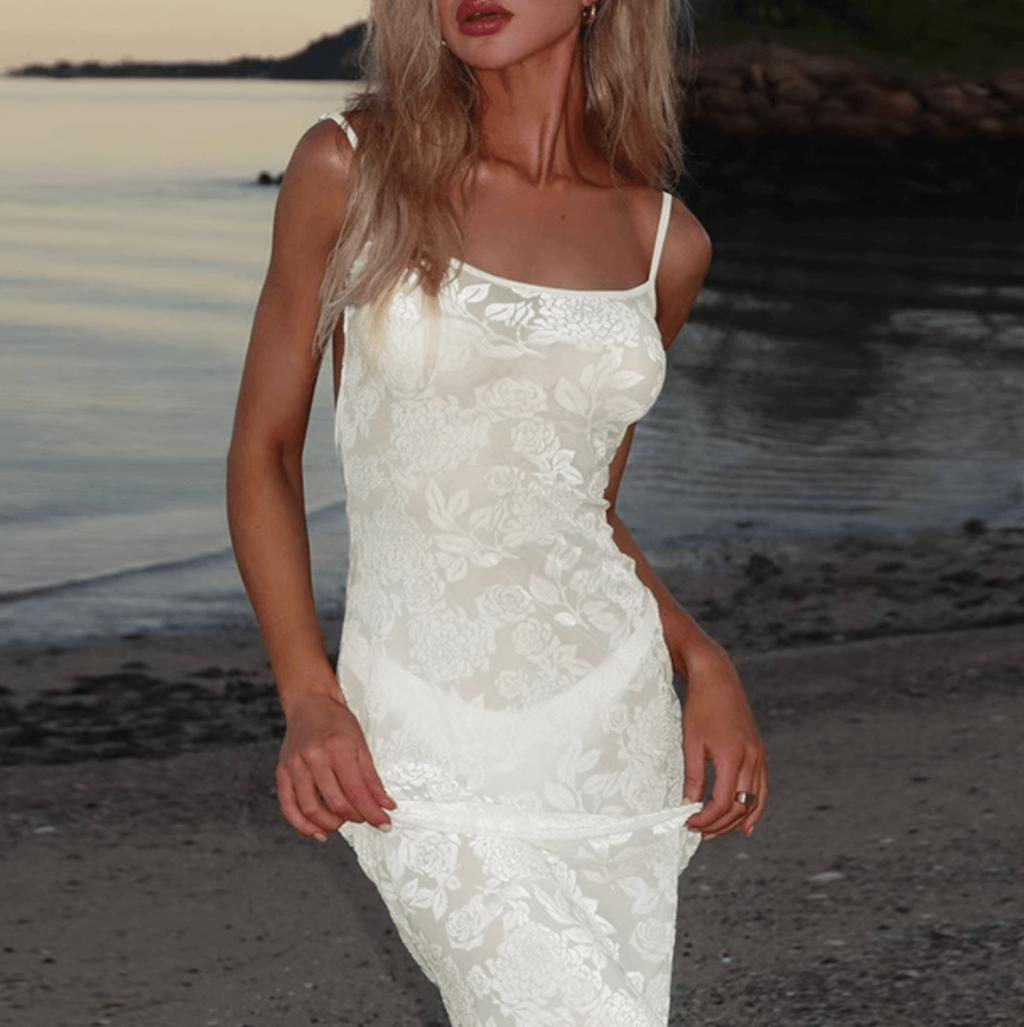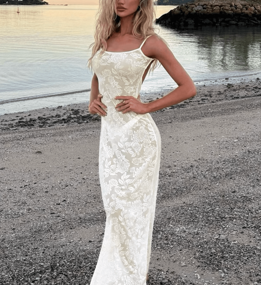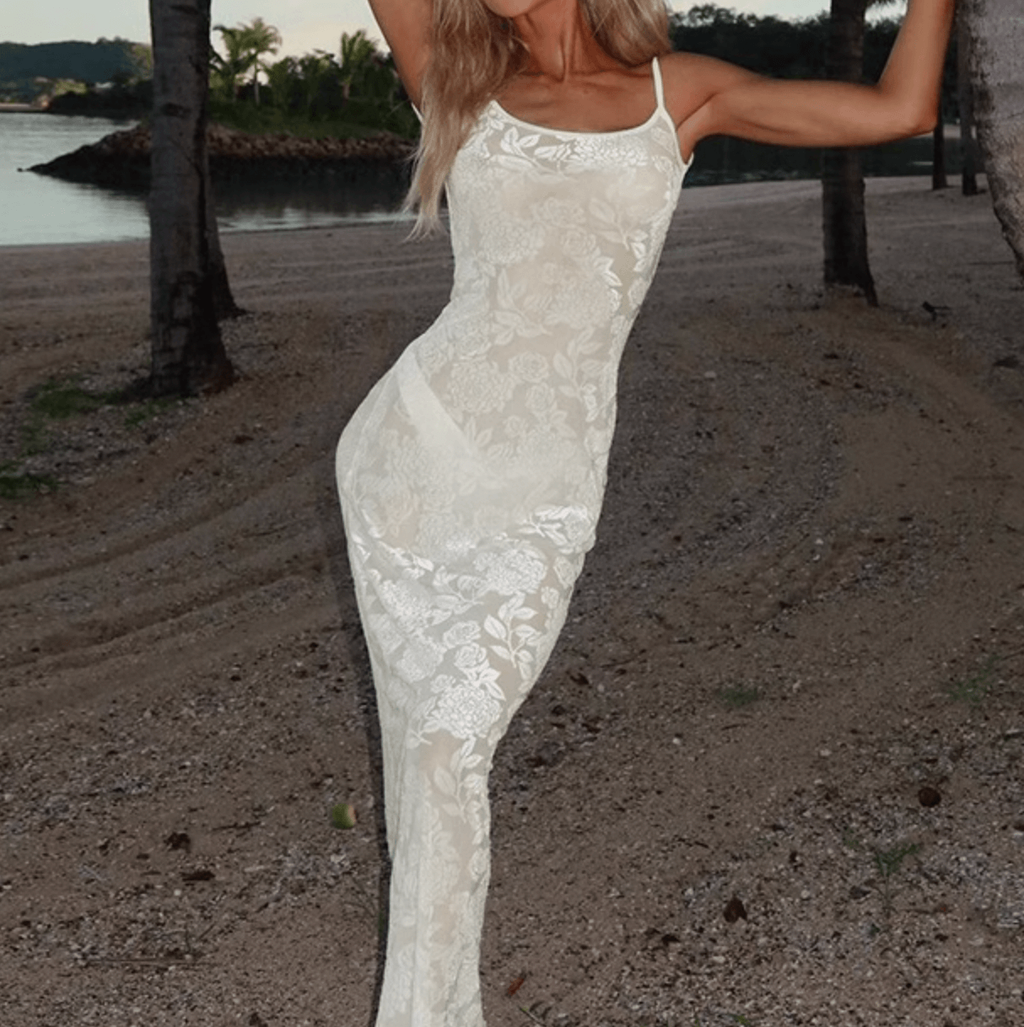 ROSE PRINTS MESH LACE MAXI DRESS