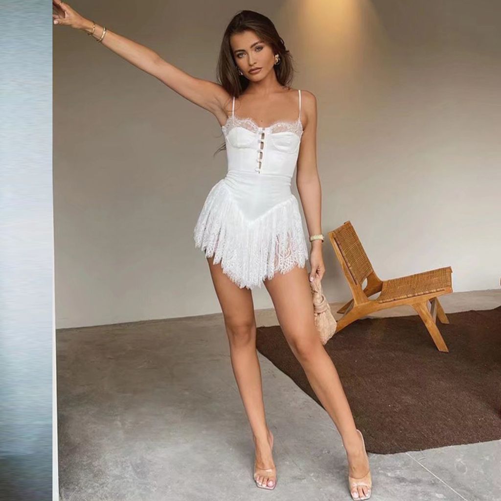 ANGEL WHITE *新貨搶購*細肩ROMANTIC LACE翹臀 MINI DRESS