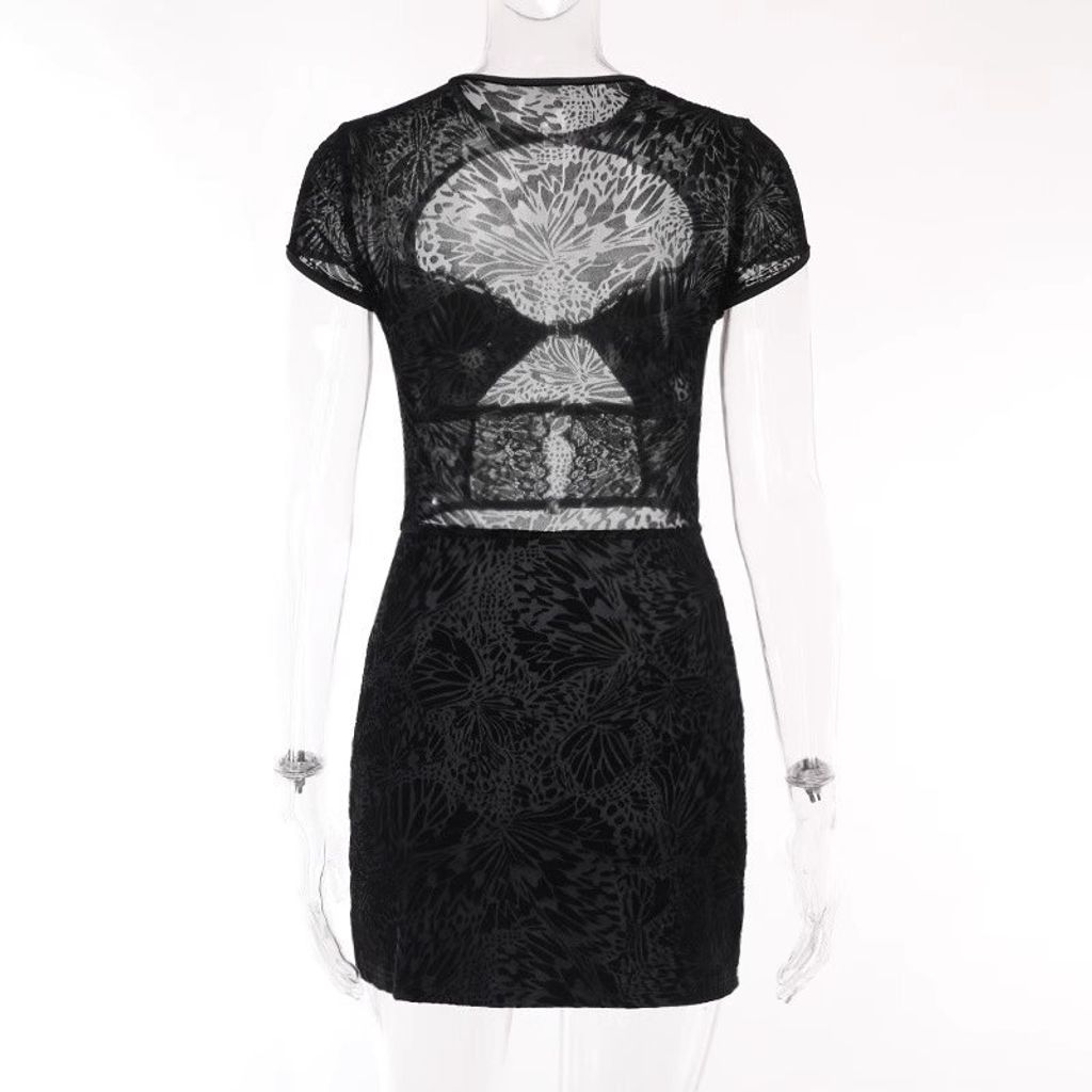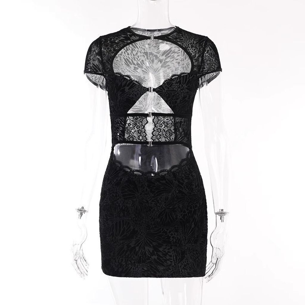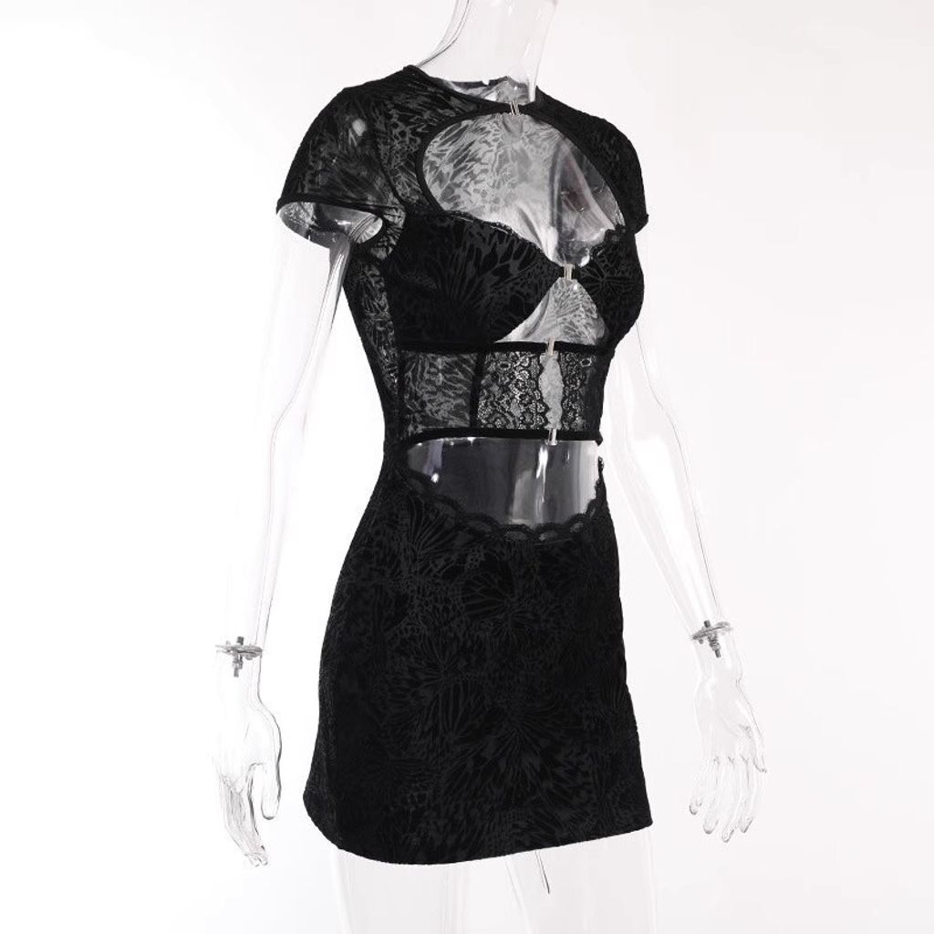 LACE FRONT MINI DRESS IN BLACK