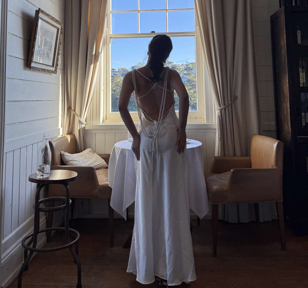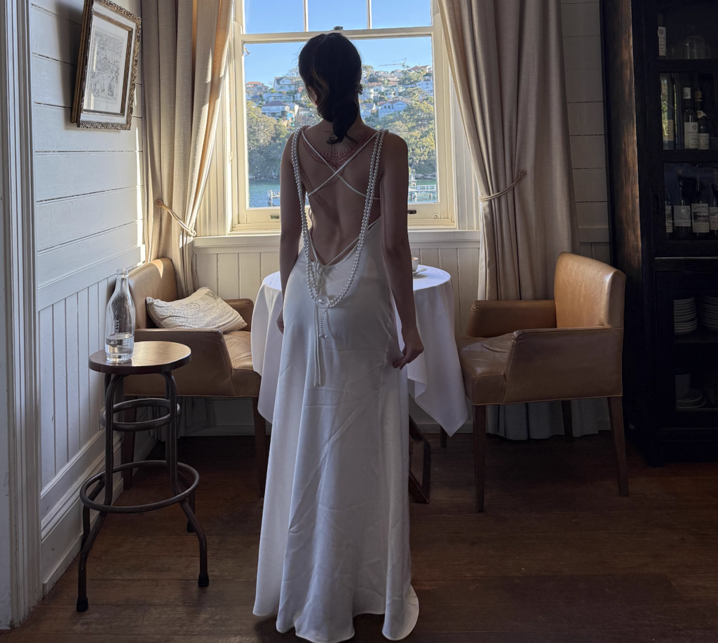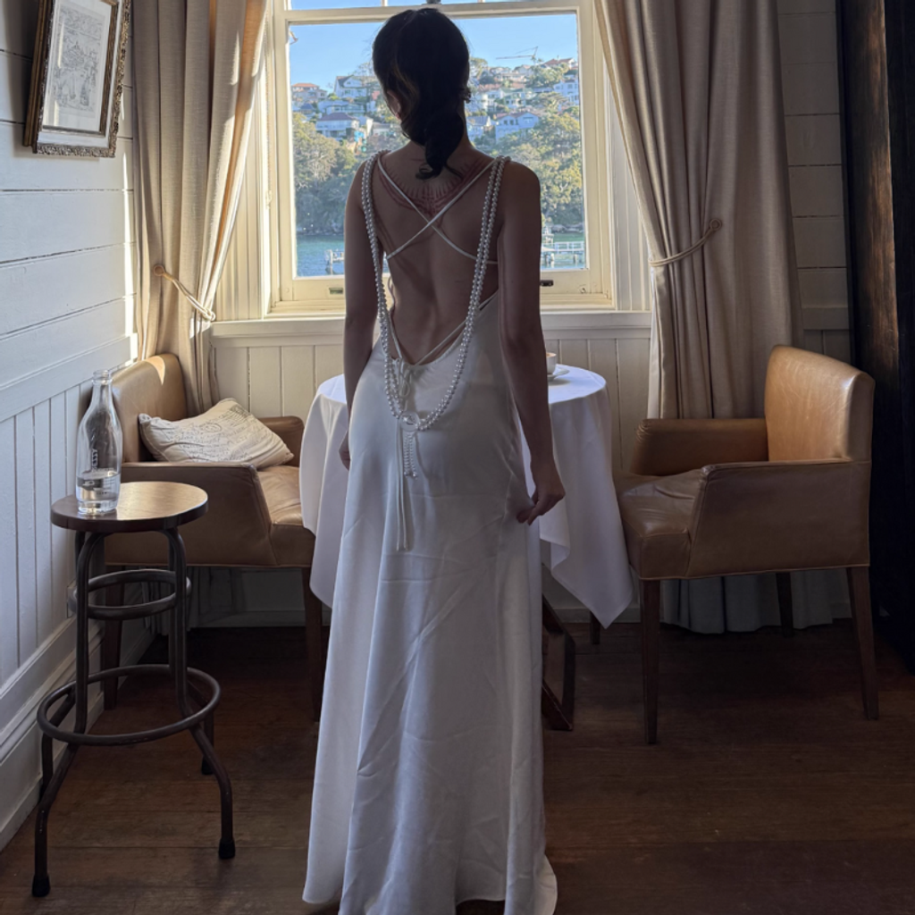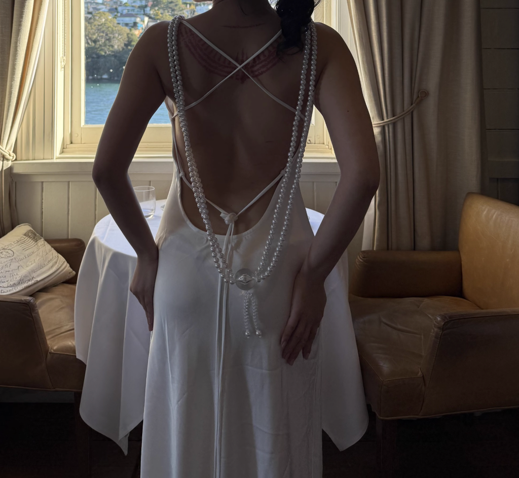 CHEEKY GODDESS PEARLS DROPS BALCK MAXI DRESS