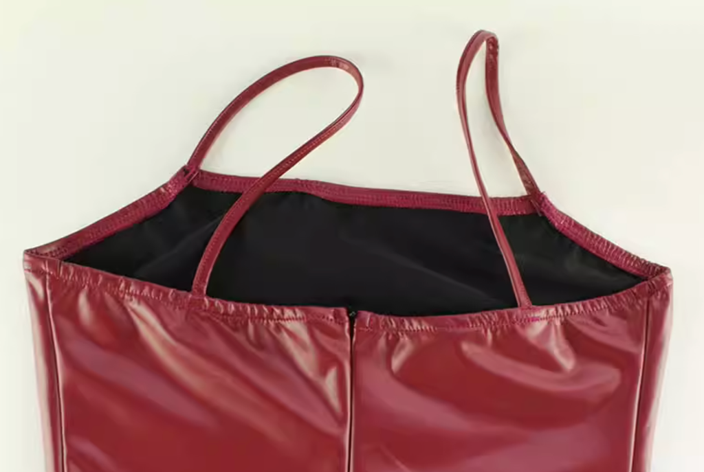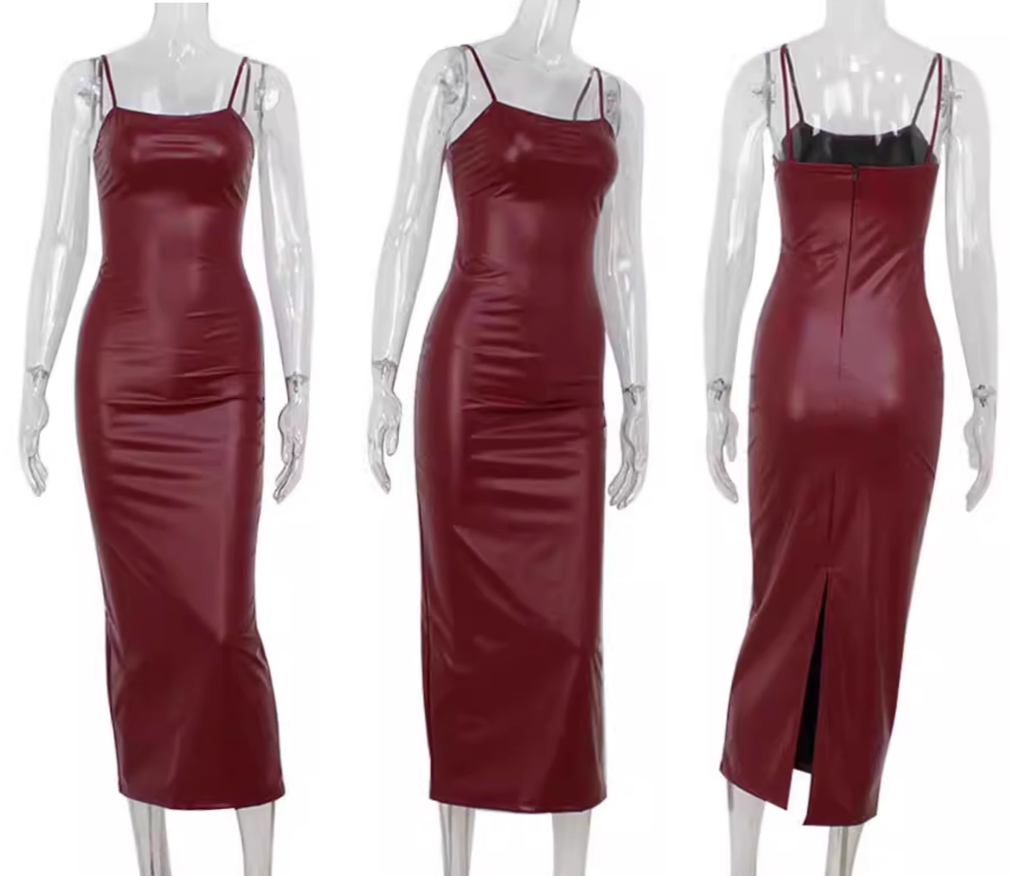 PU LEATHER MAXI DRESS IN BURGUNDY
