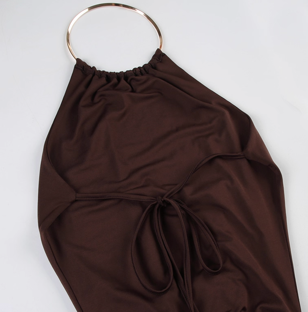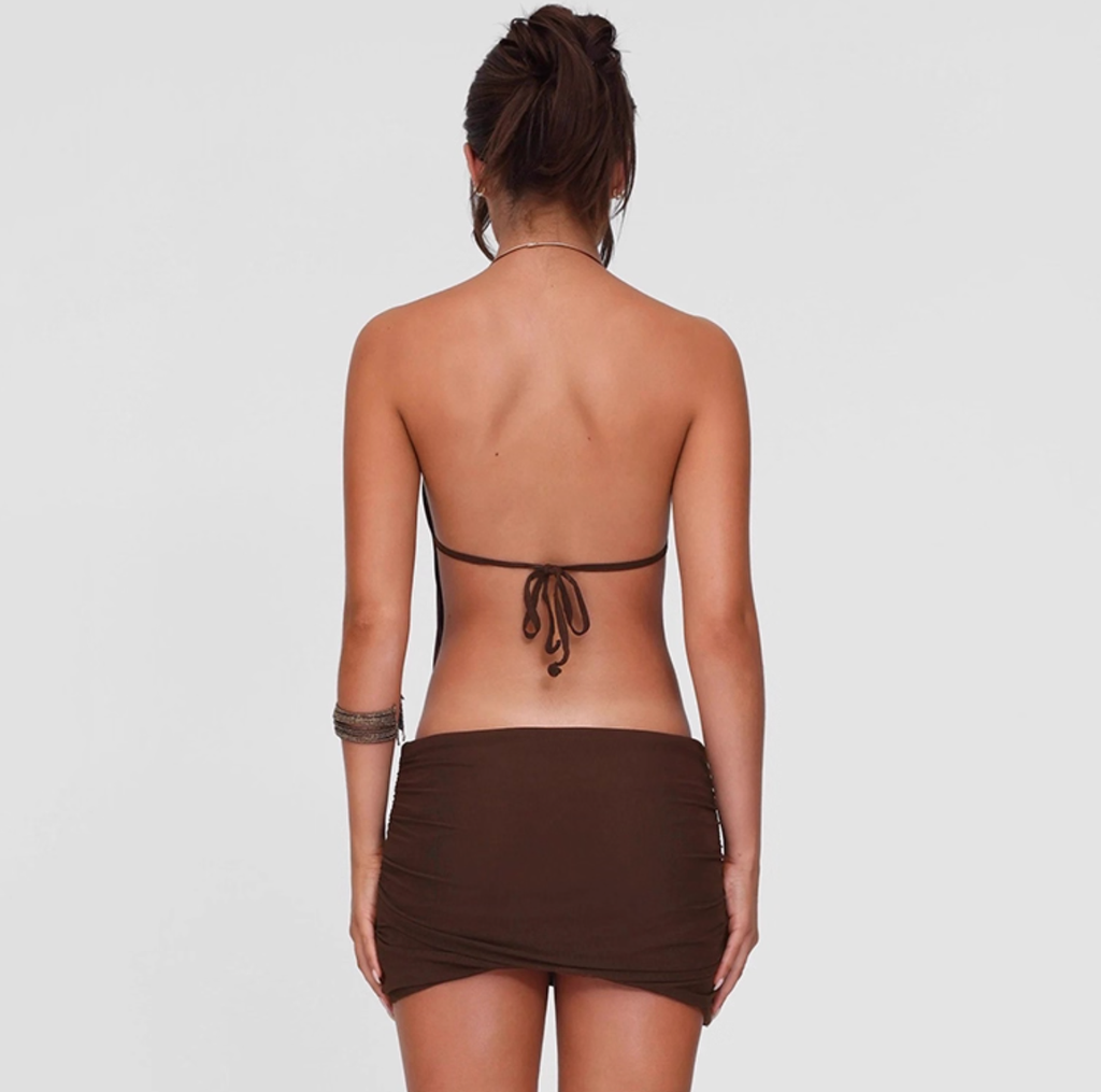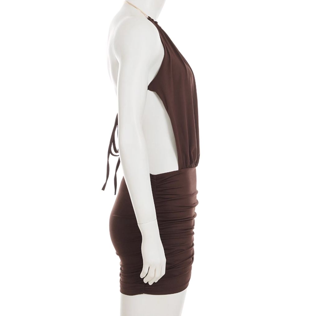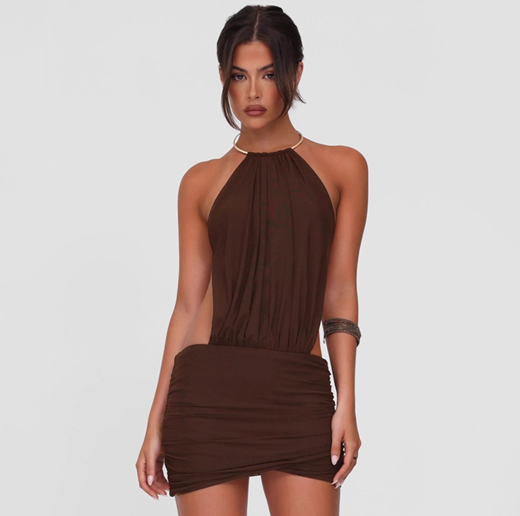 GOLD PLATED WRAP NECK CUT OUT BACK MINI DRESS