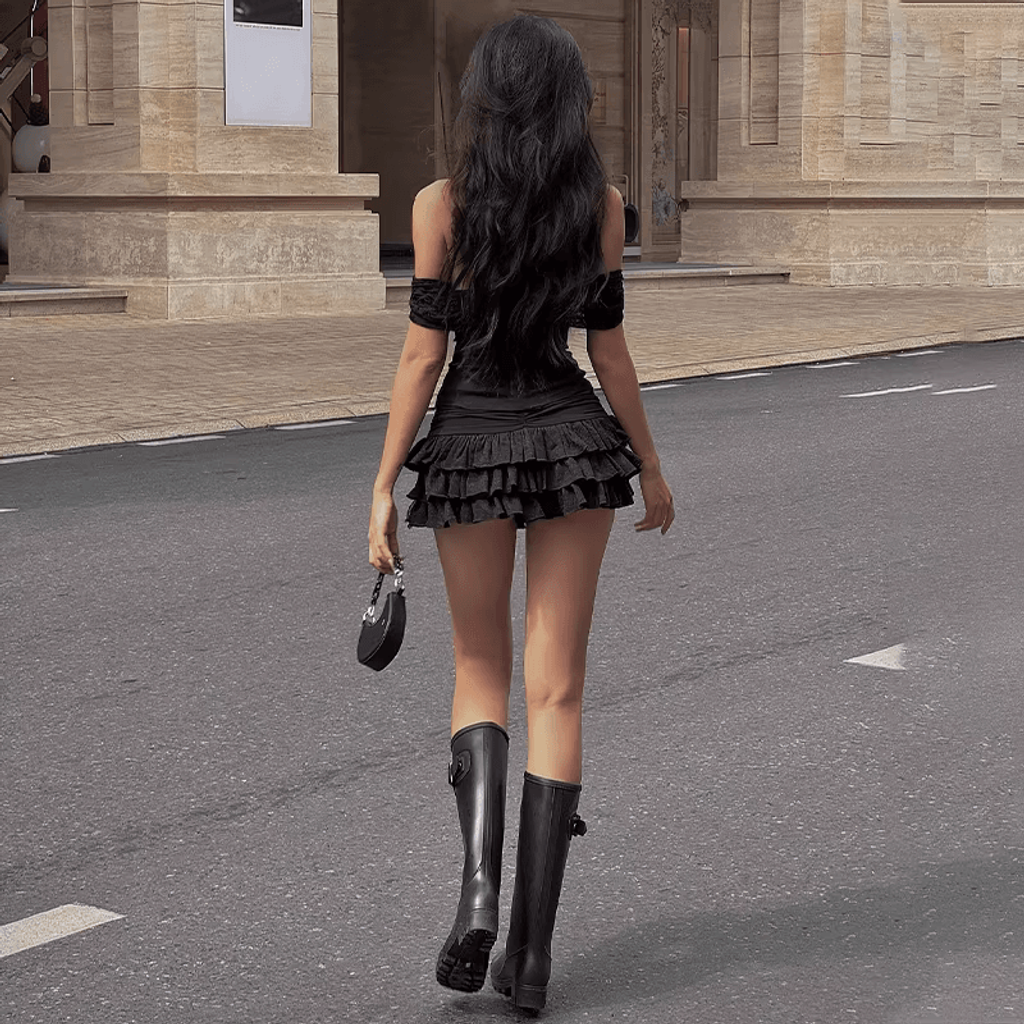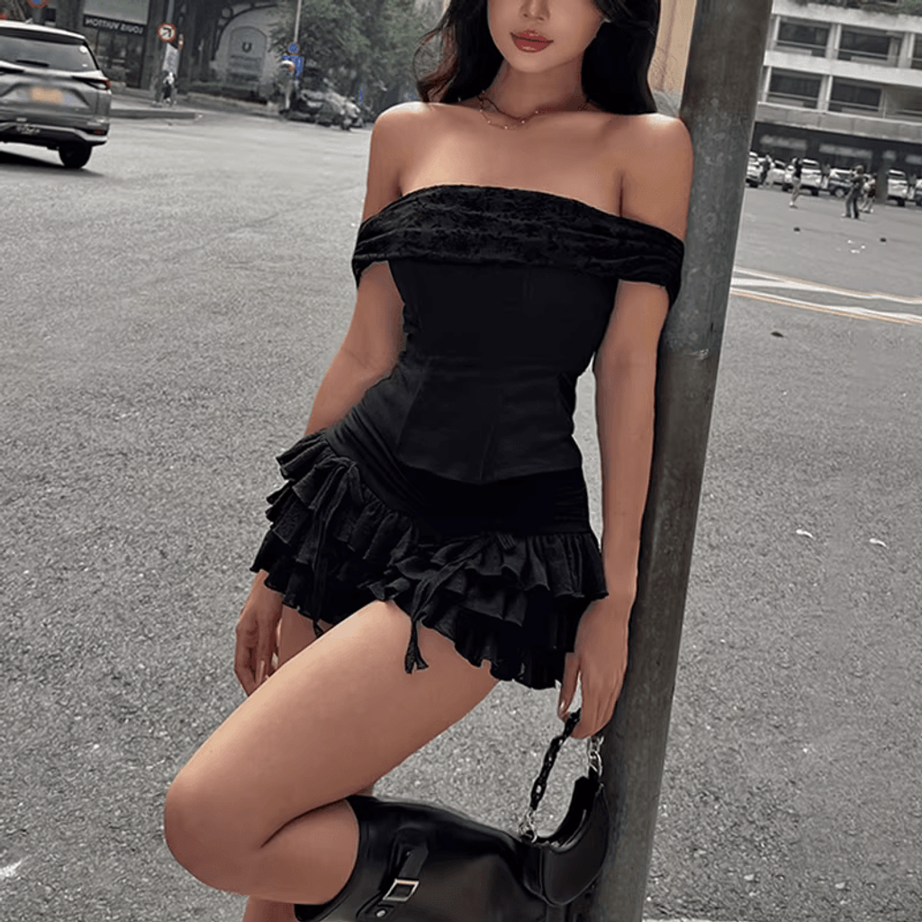 CHEEKY OFF SHOULDER RUFFLE MINI DRESS