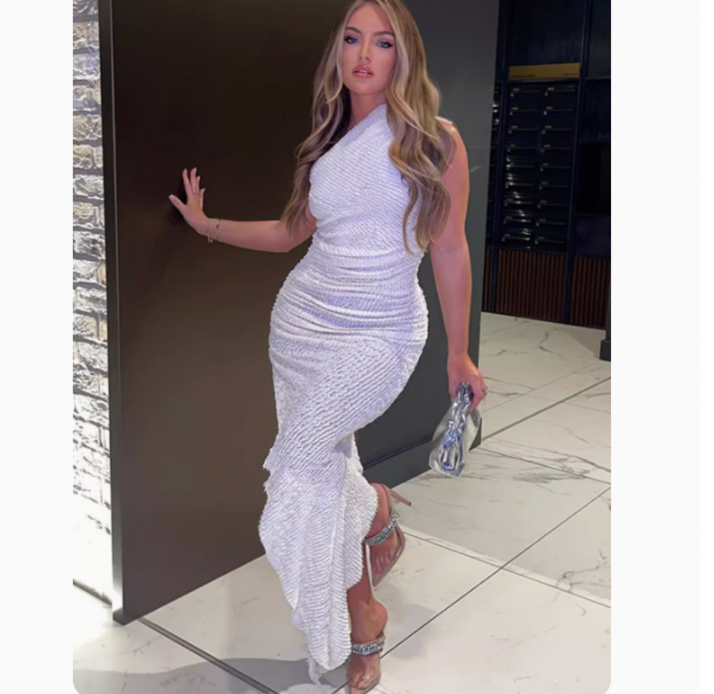 ONE SHOULDER OFF MAXI IRREGULAR DRESS