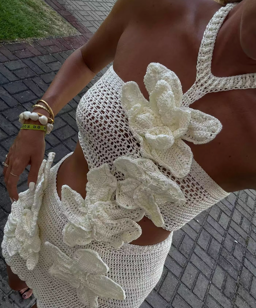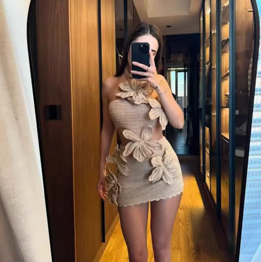FLOWERS KNITTED MINI DRESS