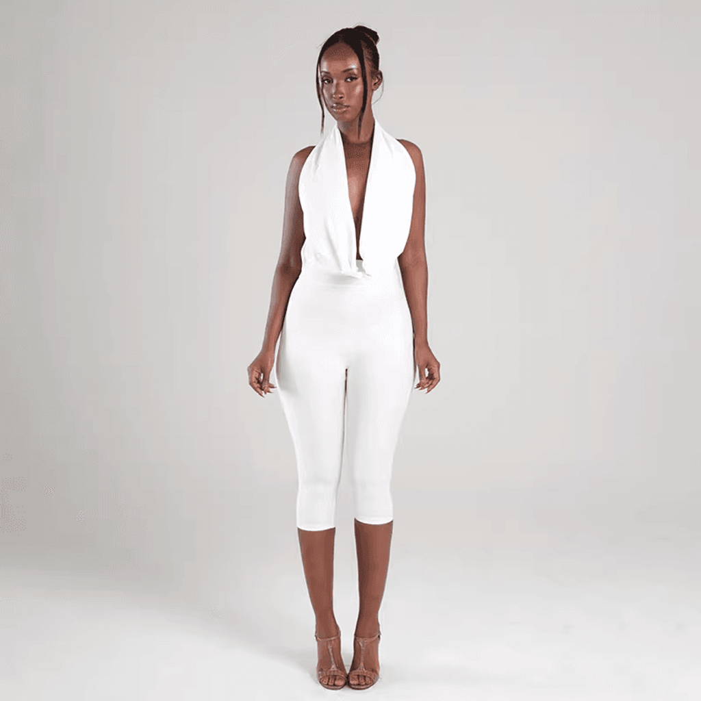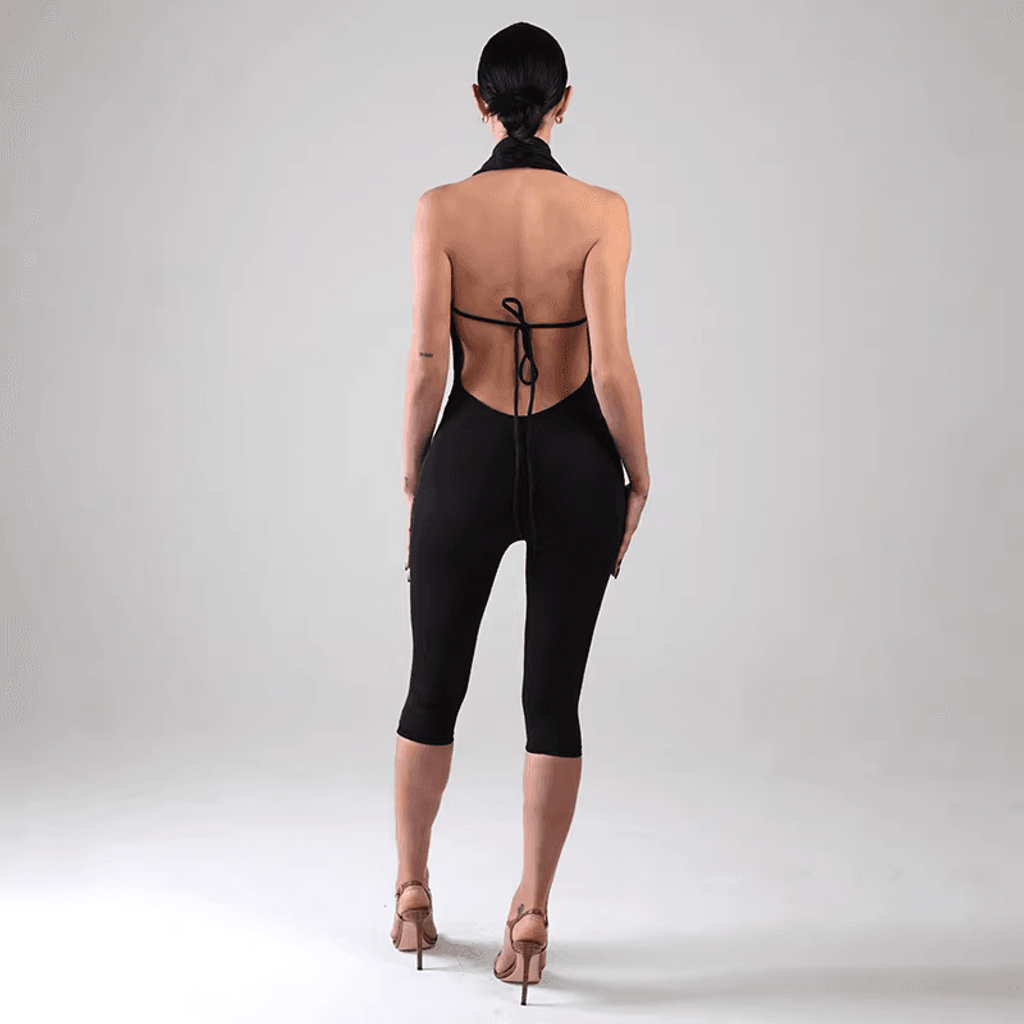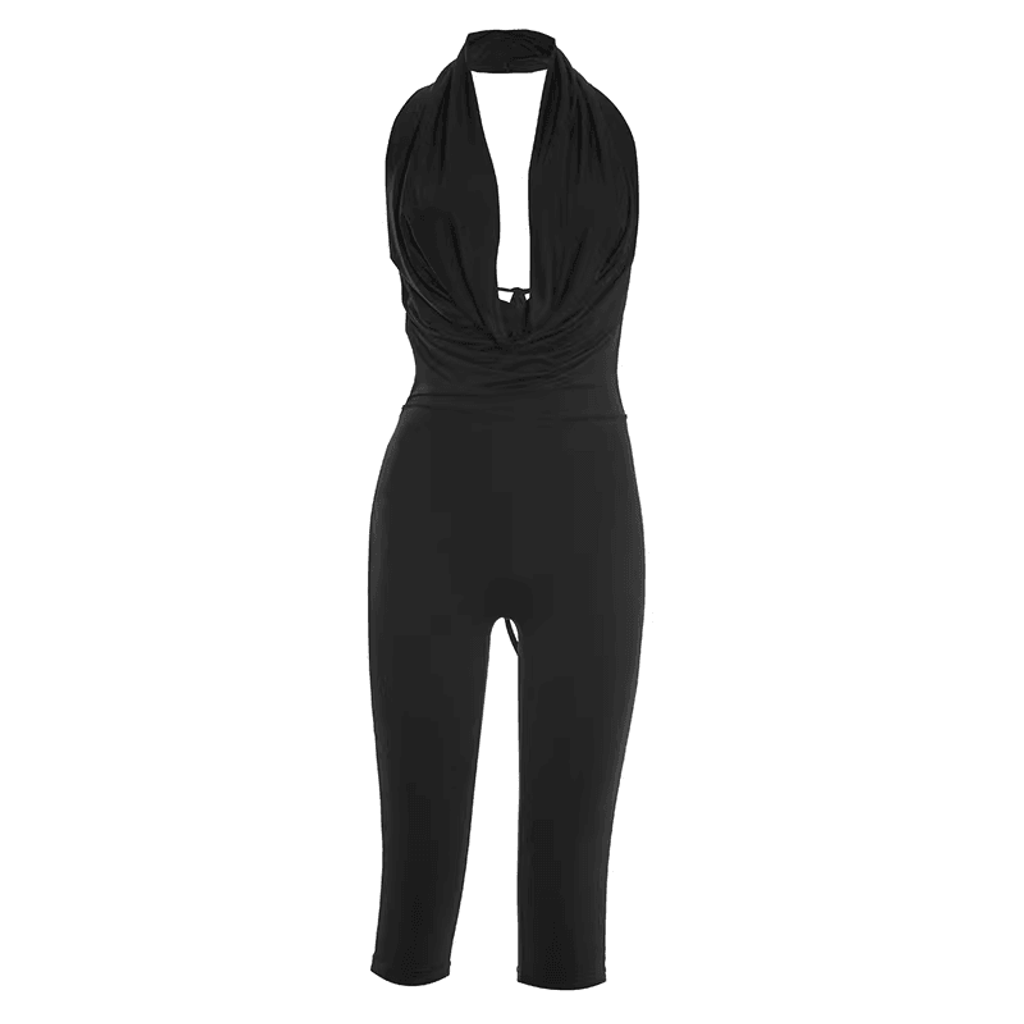 RUCHED WRAP NECK JUMPSUIT
