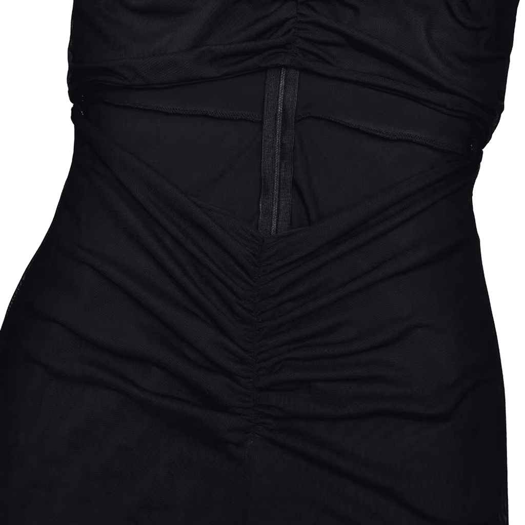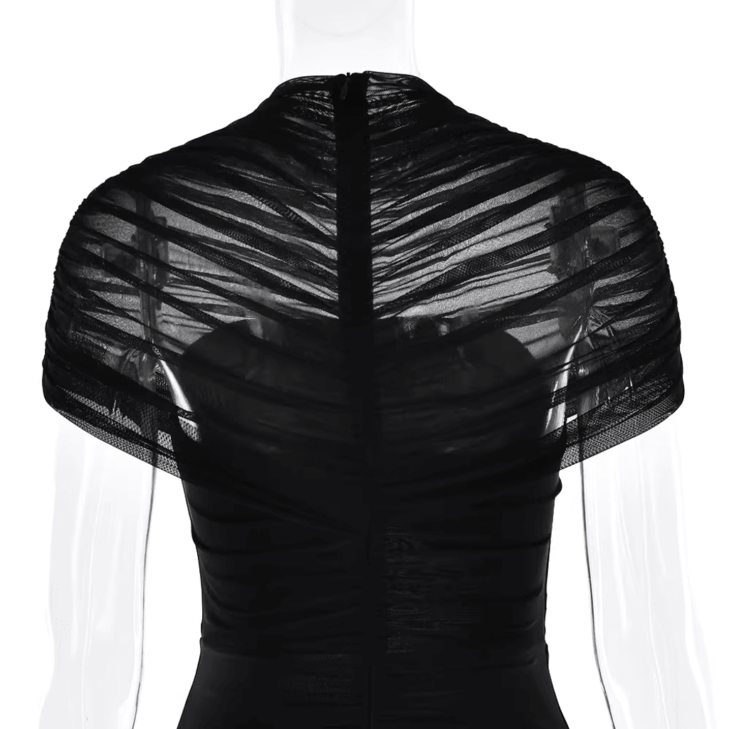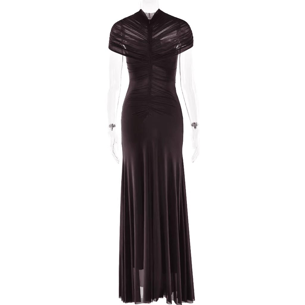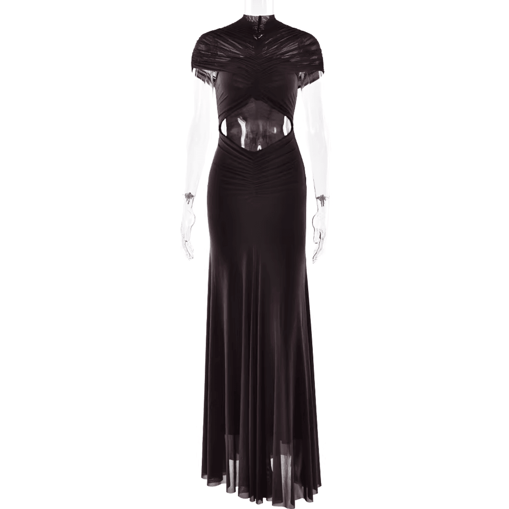 MESH SHOULDER COVER RUCHED MAXI DRESS