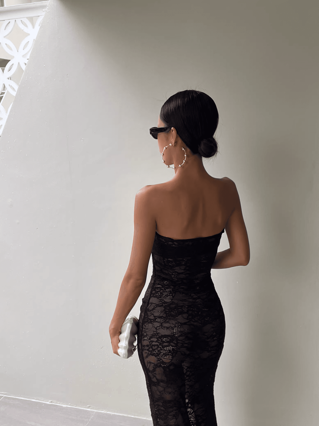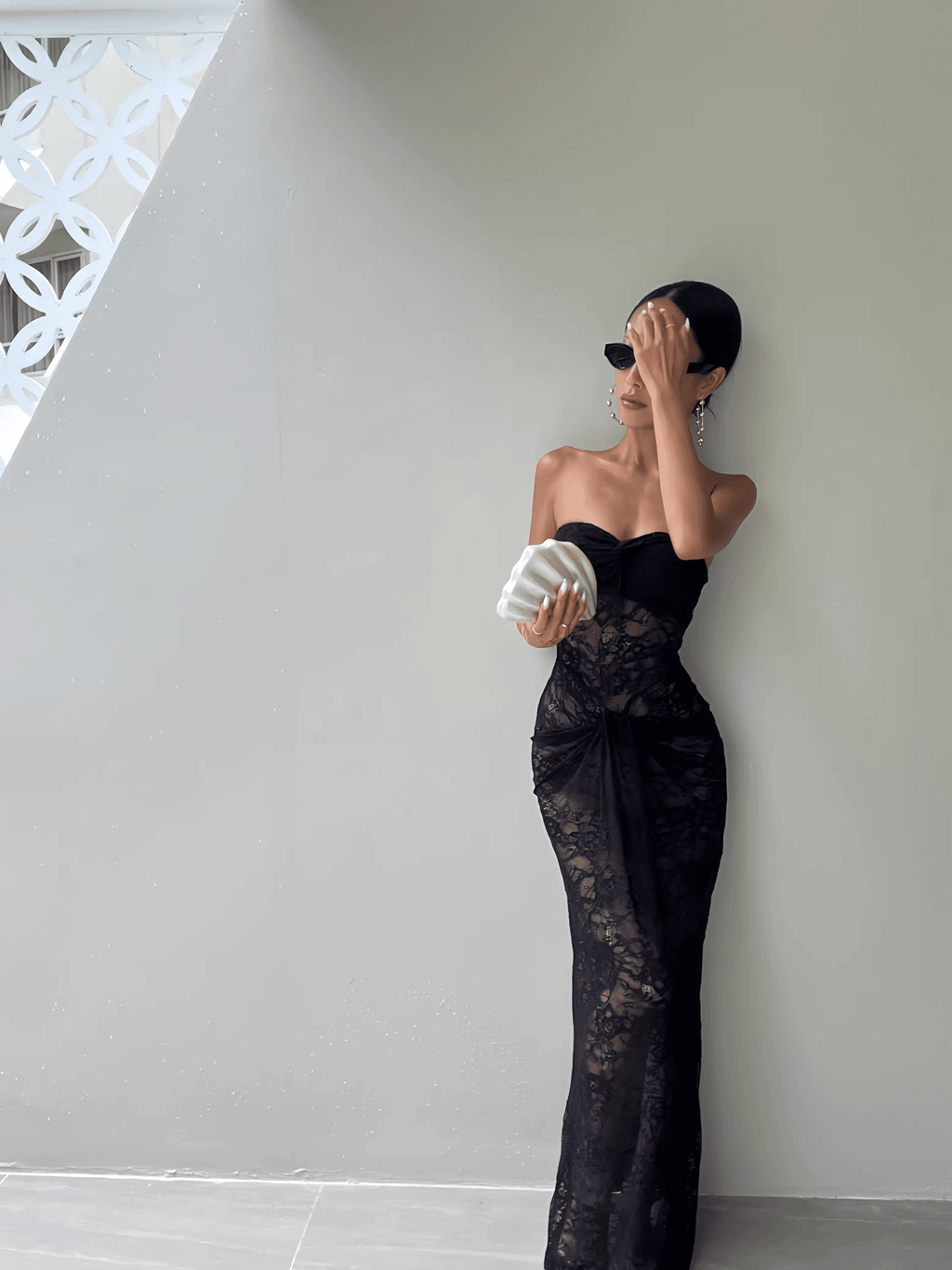 MESH LACE BARDOT BEACHY MAXI DRESS