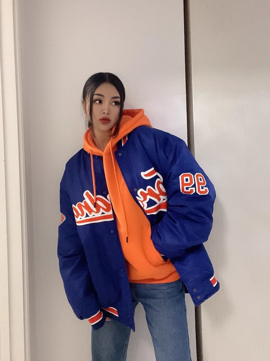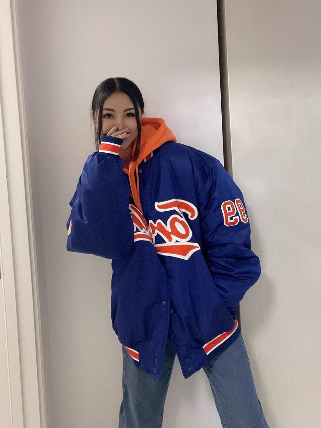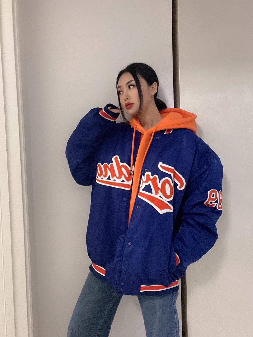 *INDIGO BASEBALL OVERSZIED BOYFRIEND BOMBER*