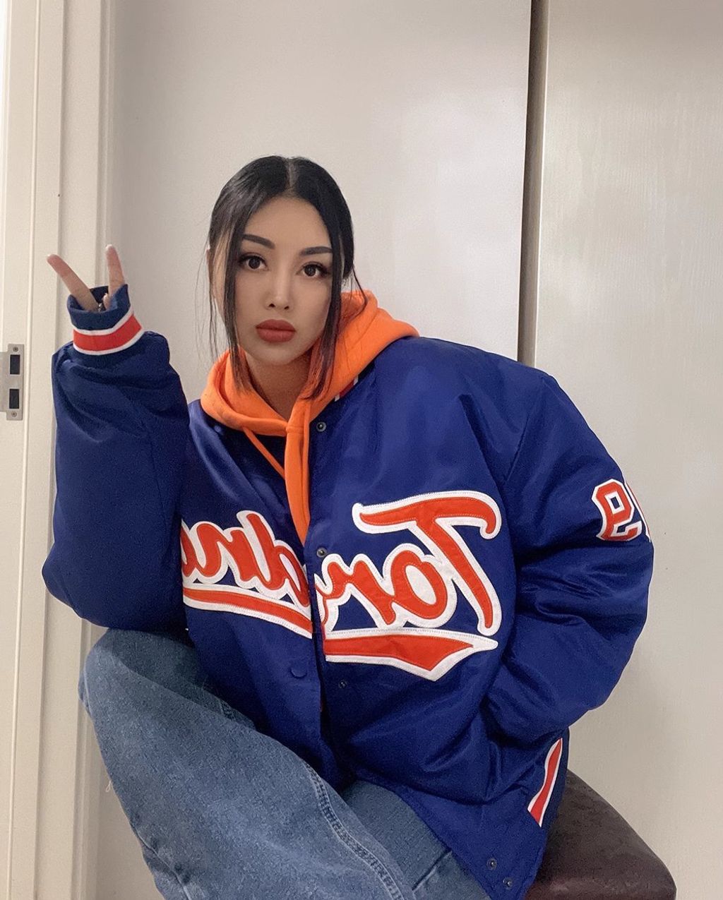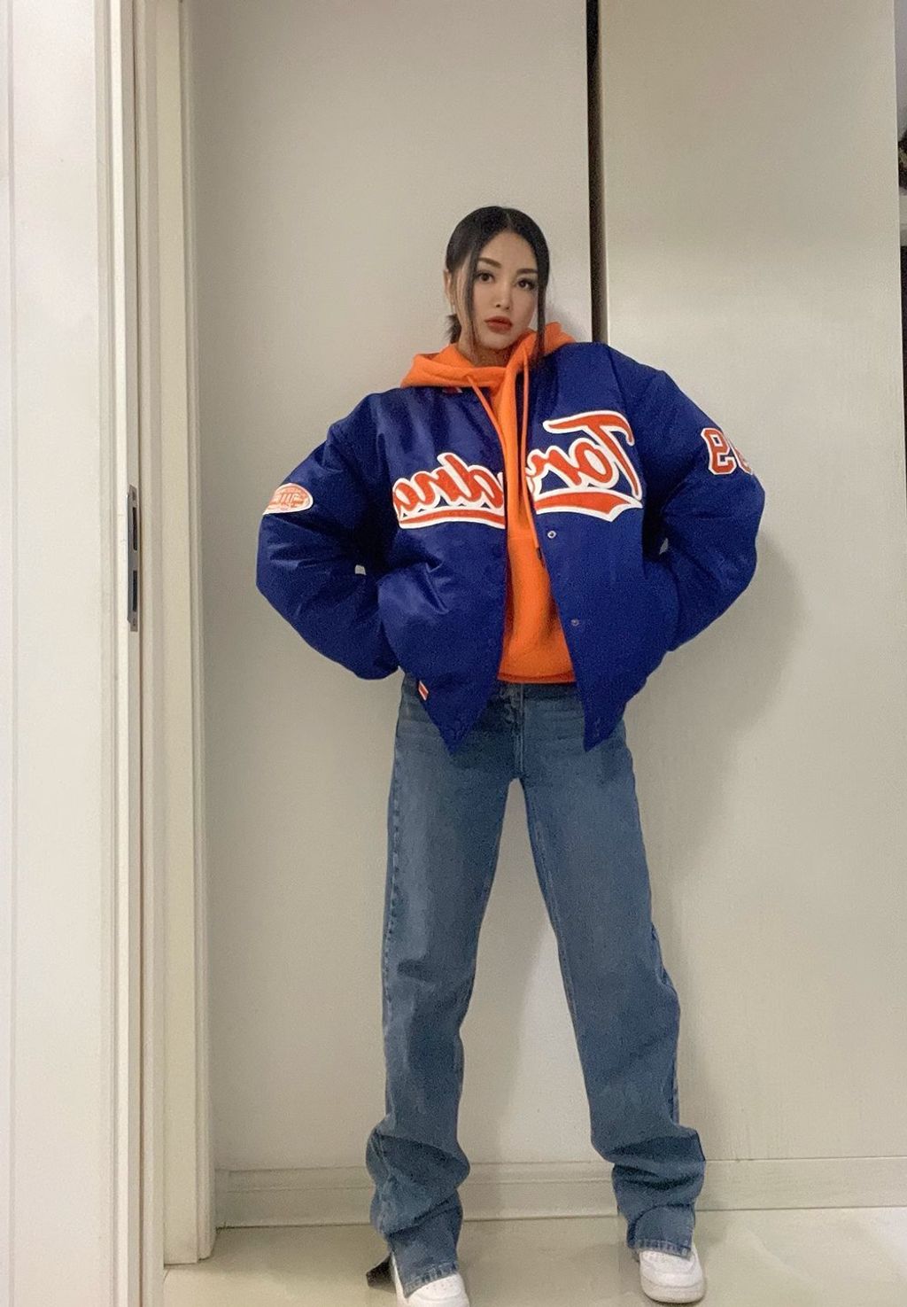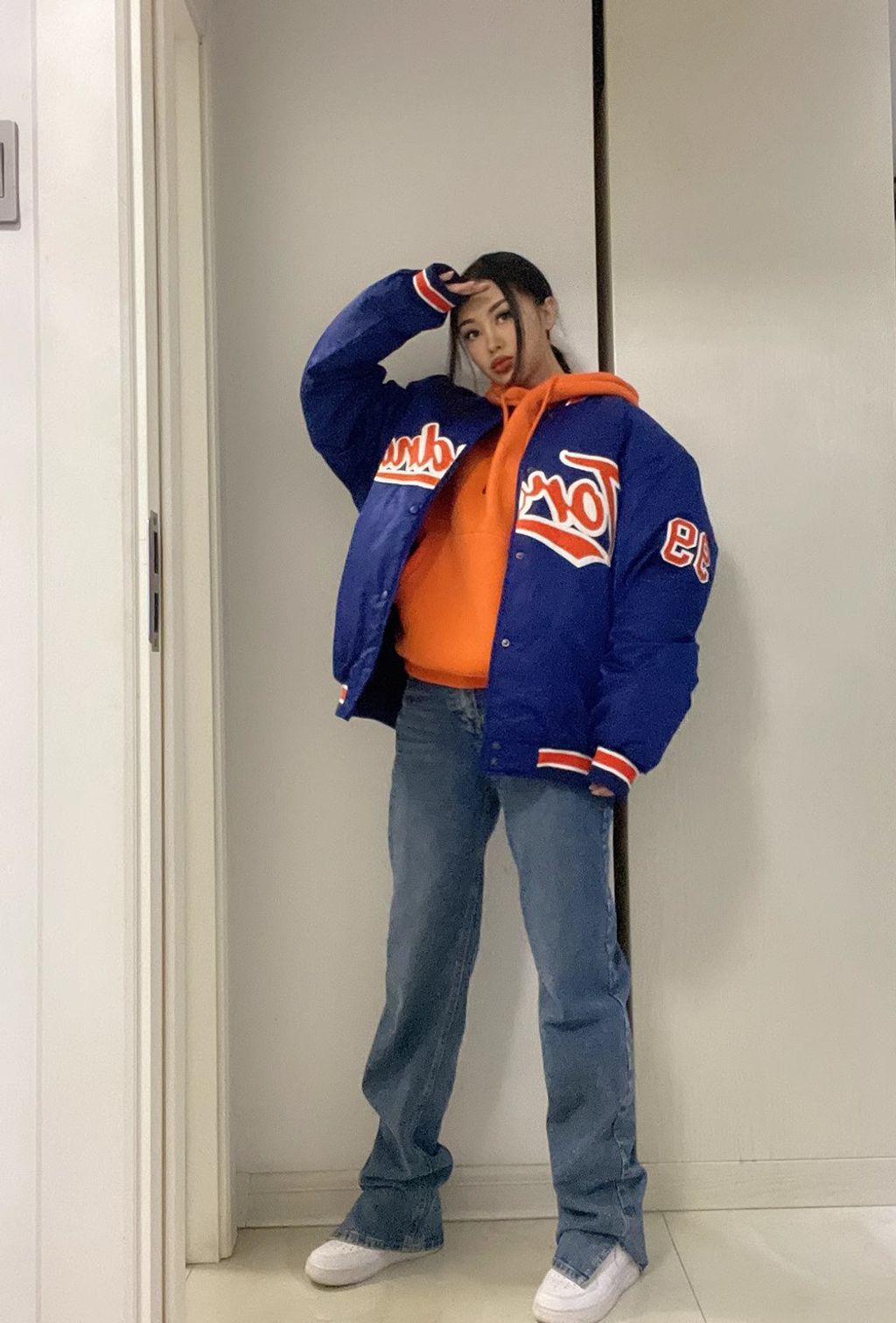 *INDIGO BASEBALL OVERSZIED BOYFRIEND BOMBER*