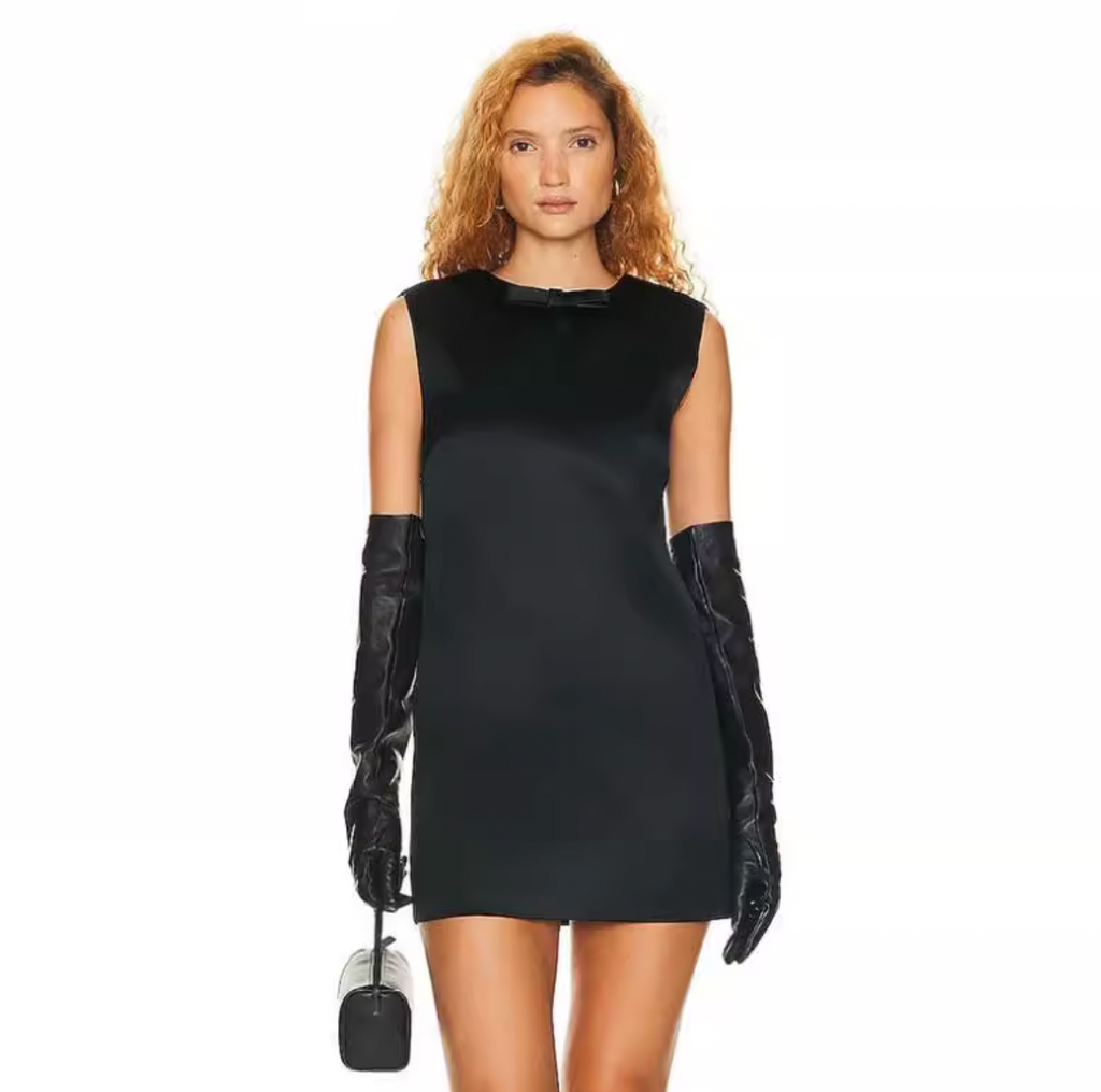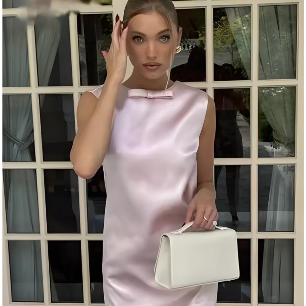 SILK BOW TIE CUT OUT BACK MINI DRESS