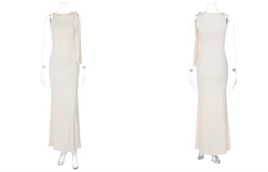 ONE SHOULDER BOW TIE RUCHED SLIT FRONT MAXI DRESS 總分: 0 - 0評價