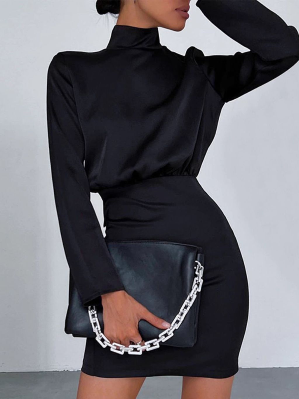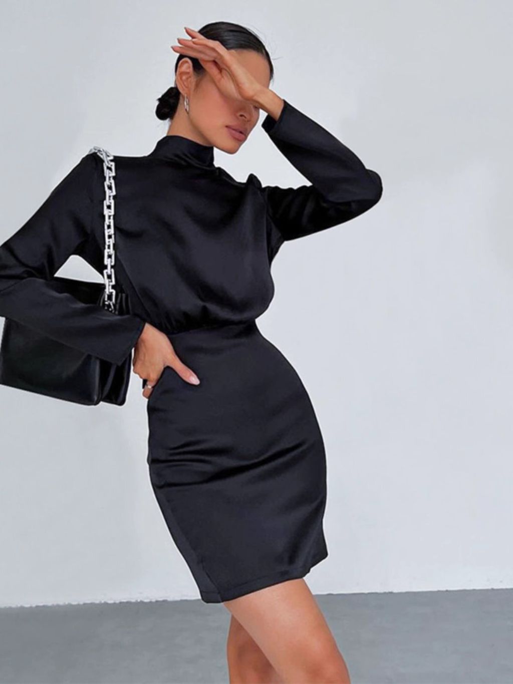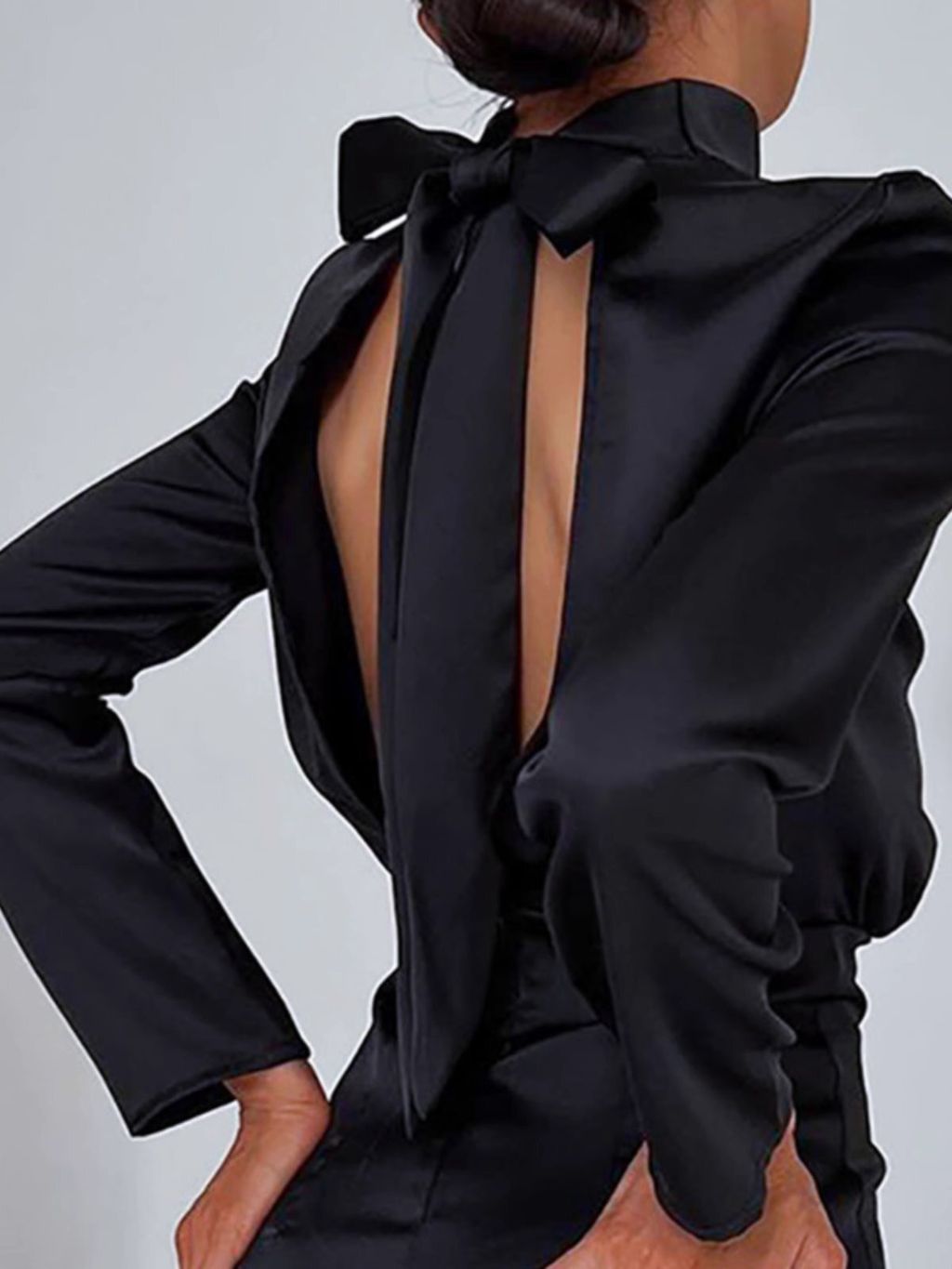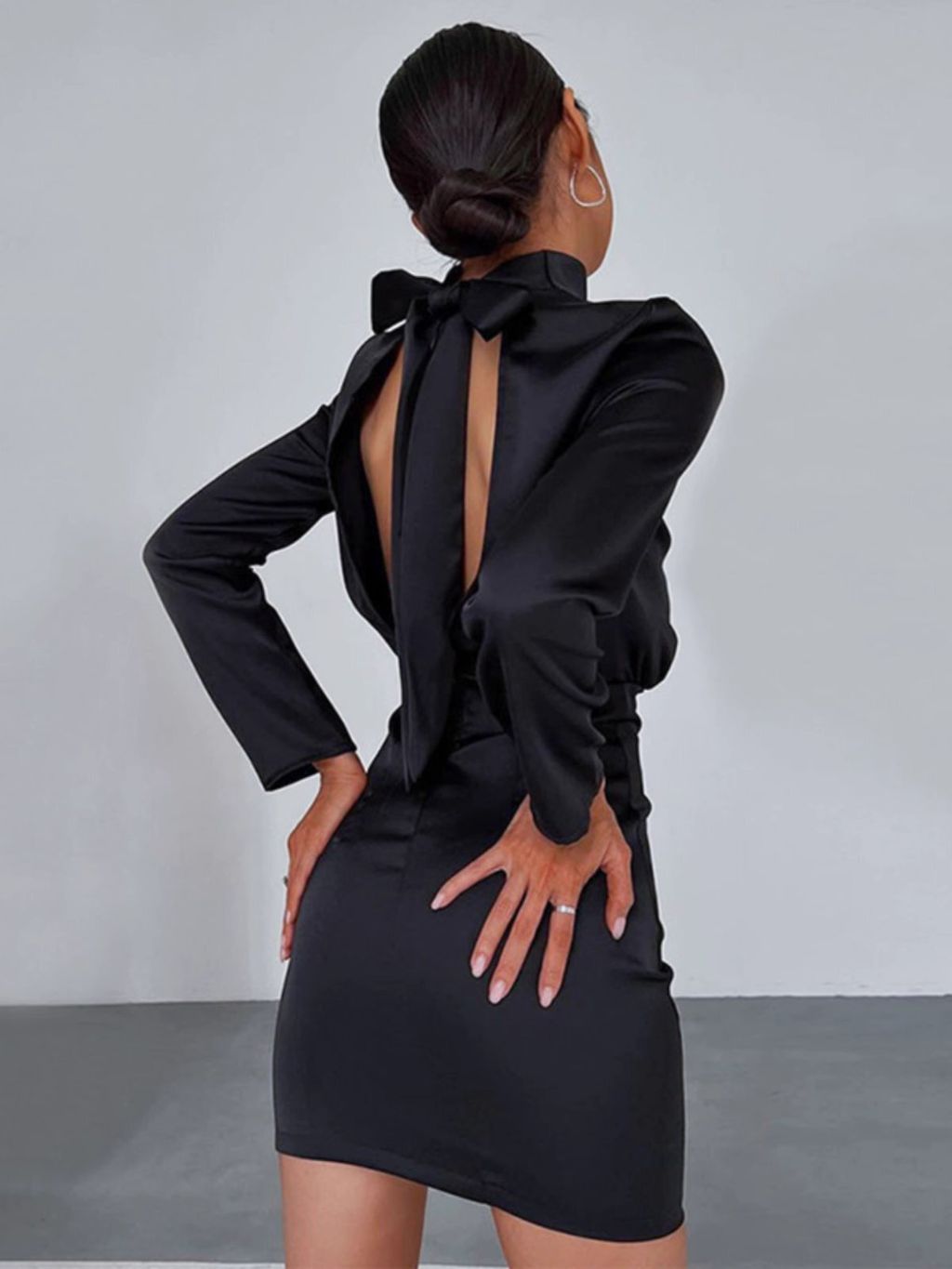 SATIN BOW TIE CUT OUT BACK MINI DRESS